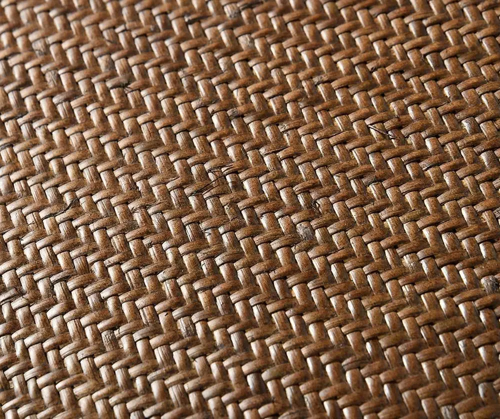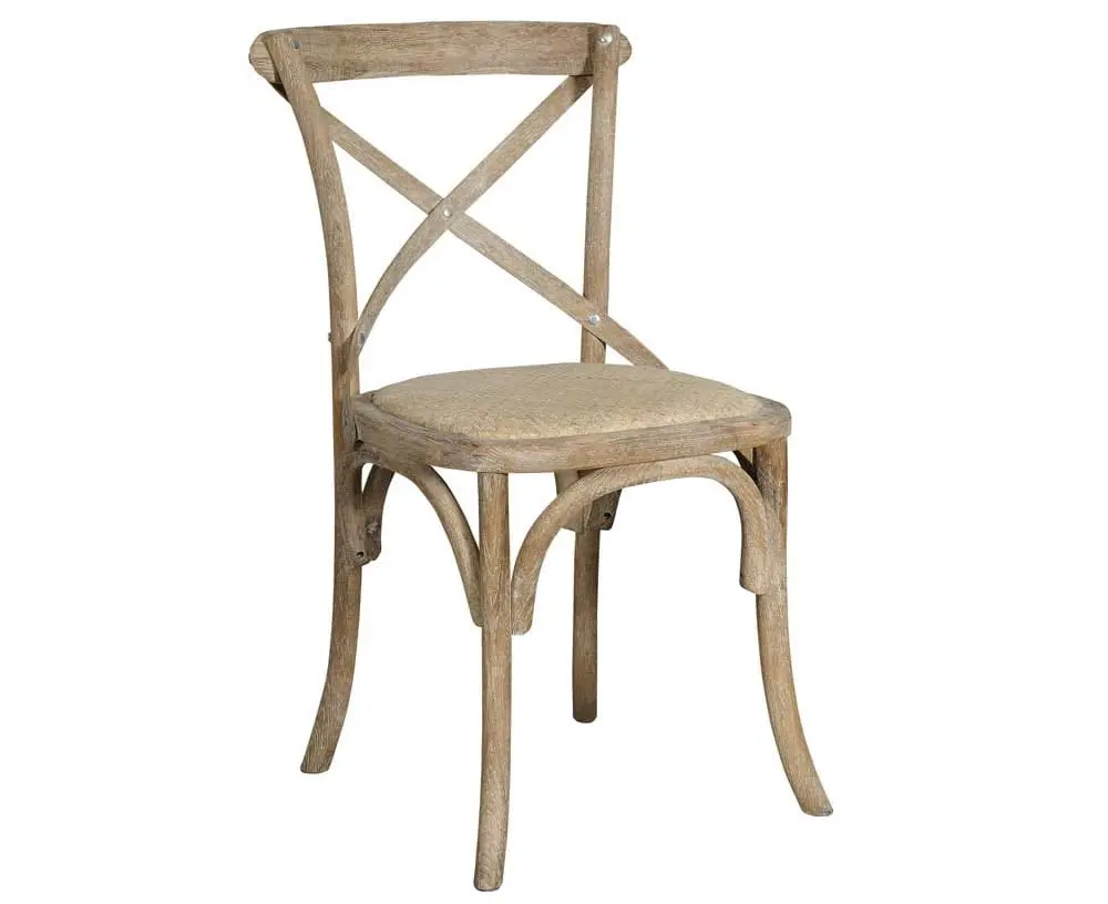 Rama krzesła jest wykonana z drewna, a siedzisko z ratanu.