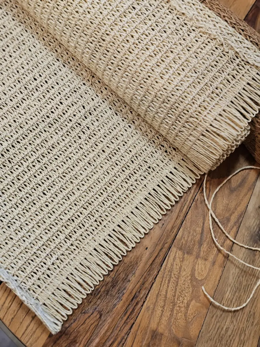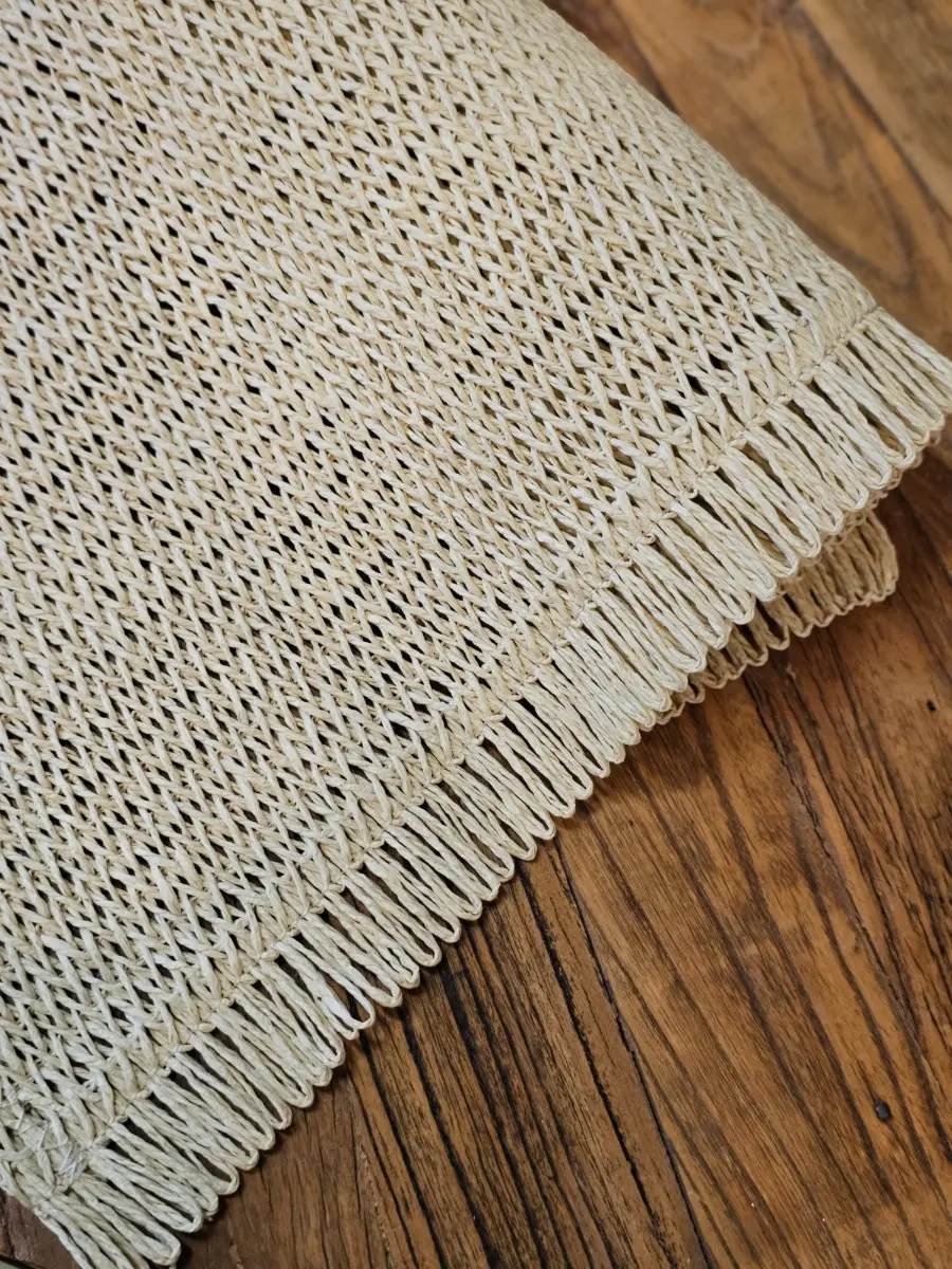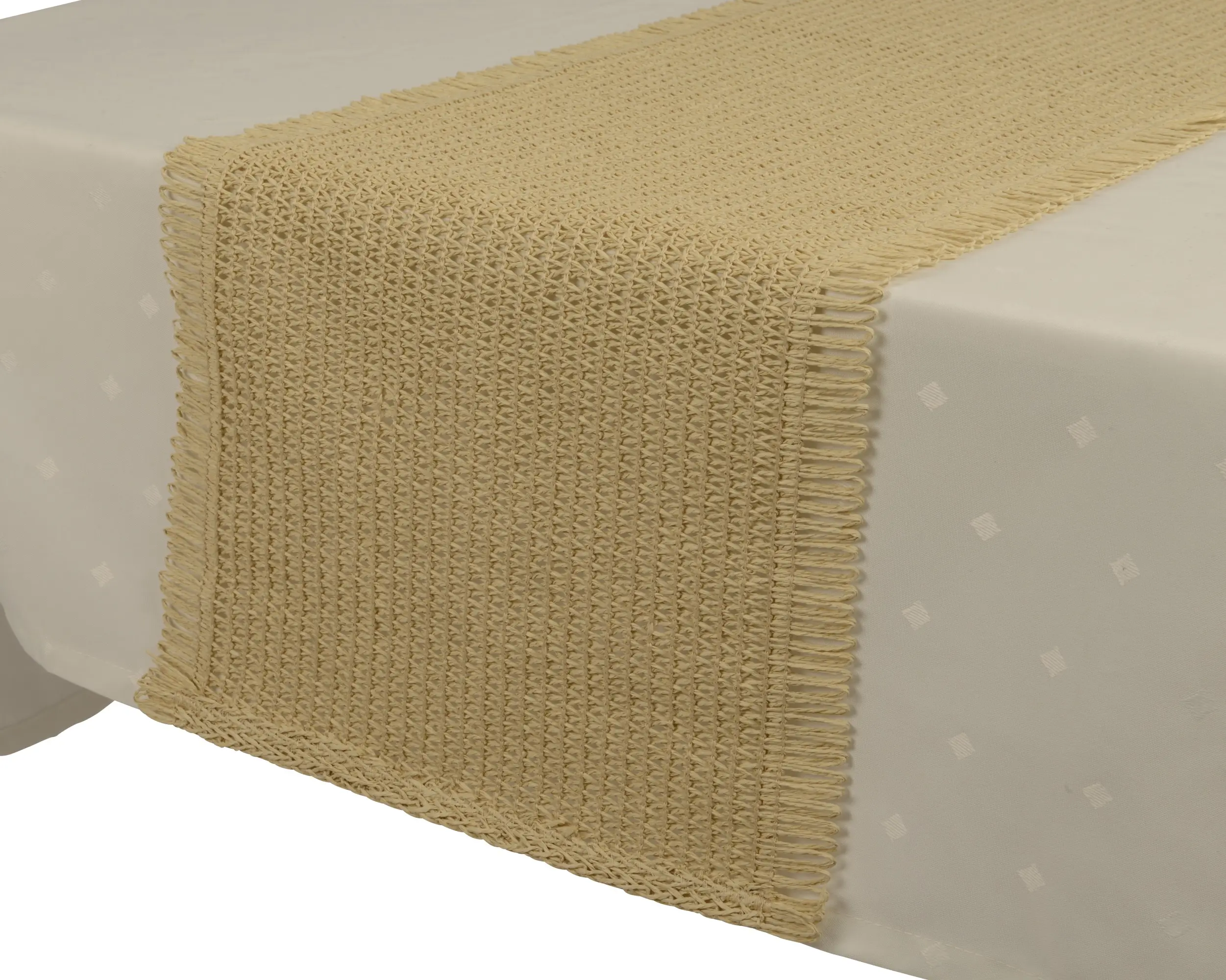 Bieżnik naturalny beżowy z frędzlami 140cm