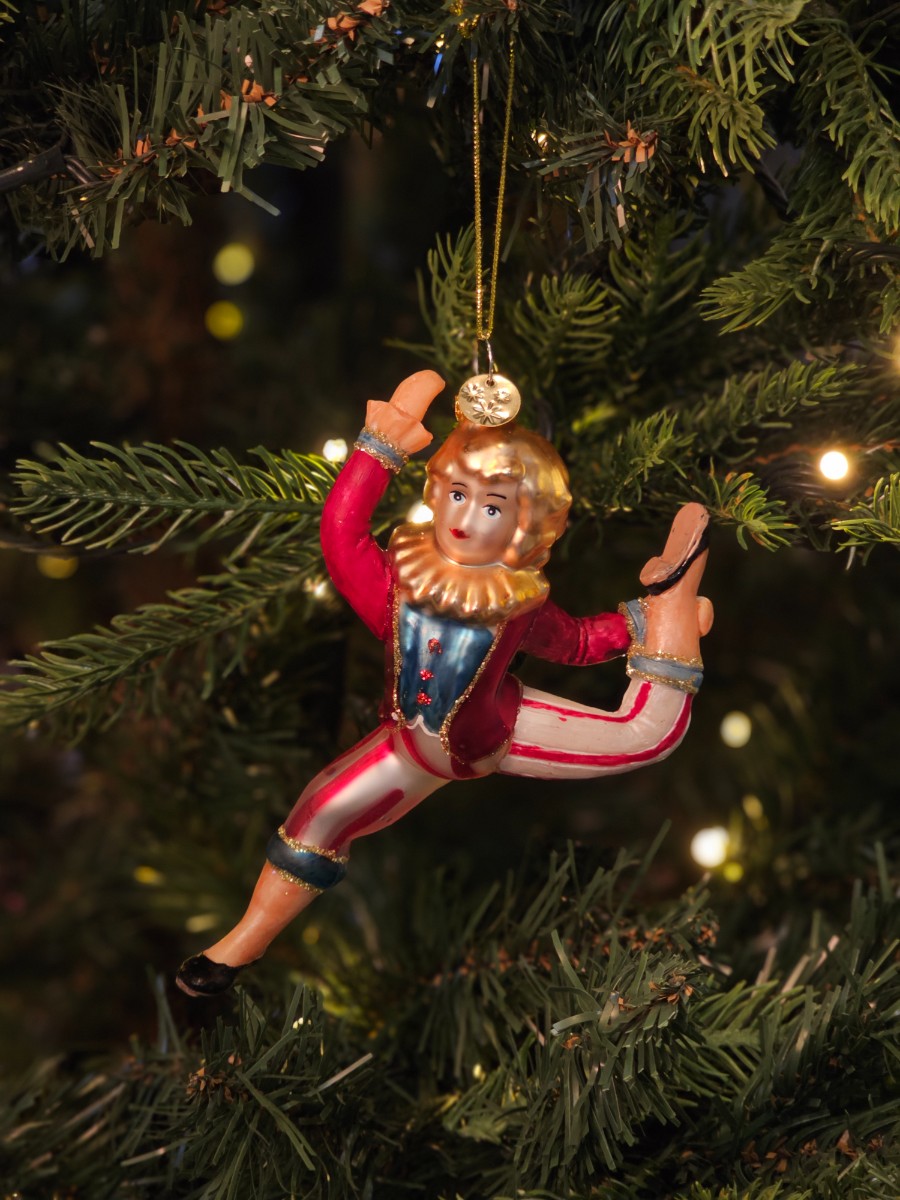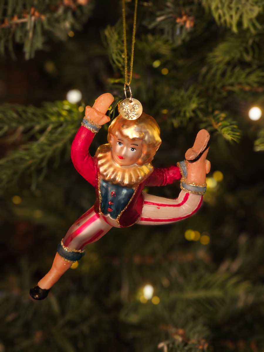 Bombka gimnastyk cyrkowy - kolorowy klaun retro 13,3cm