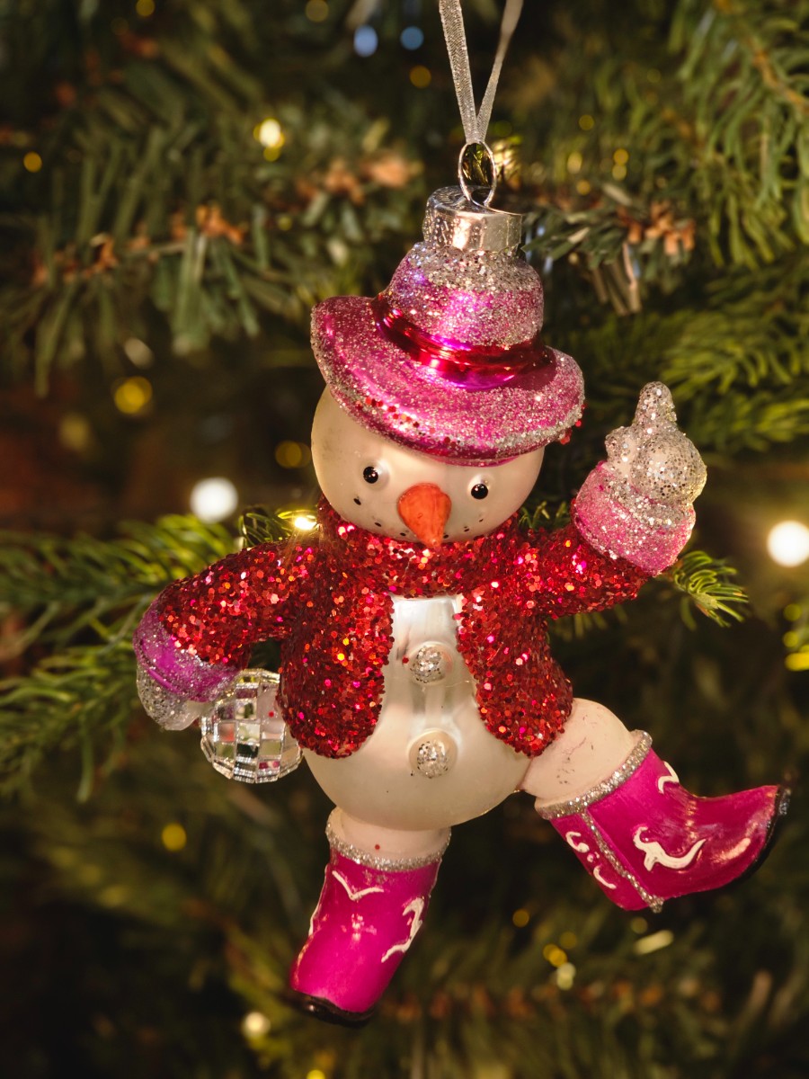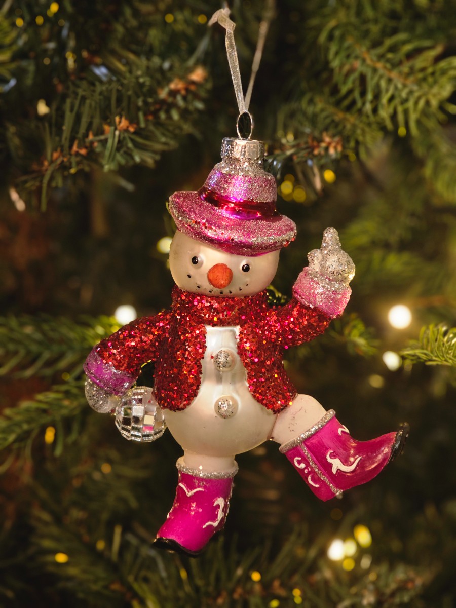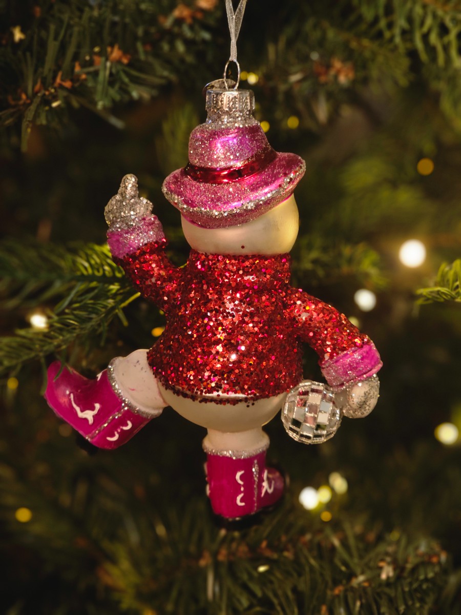 Bombka szklana bałwan disco kowboj 15,8cm