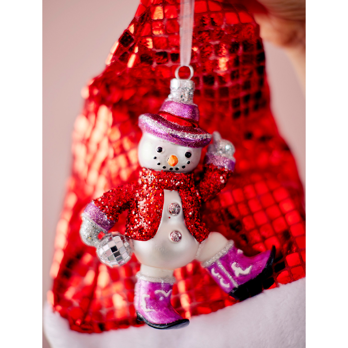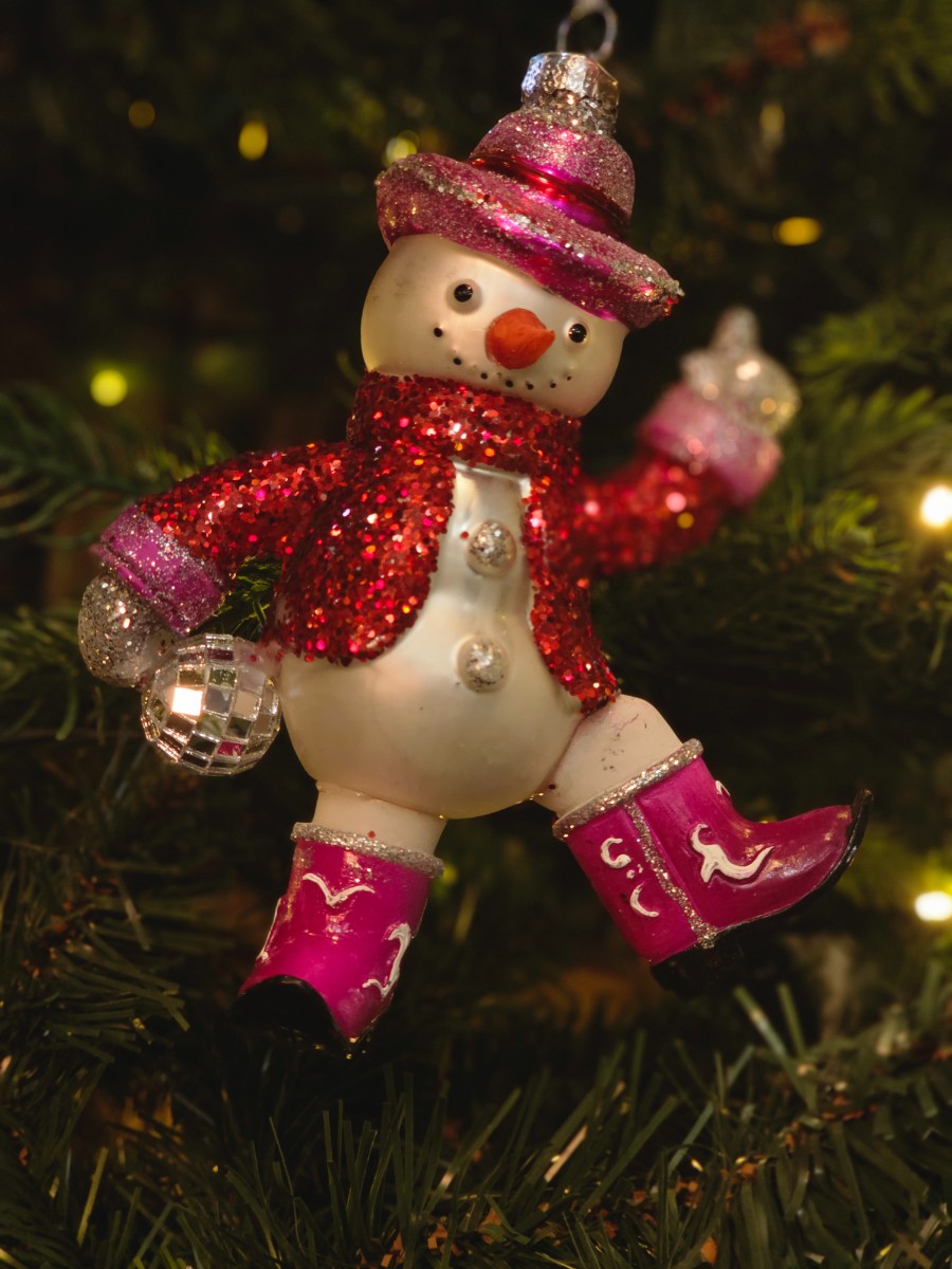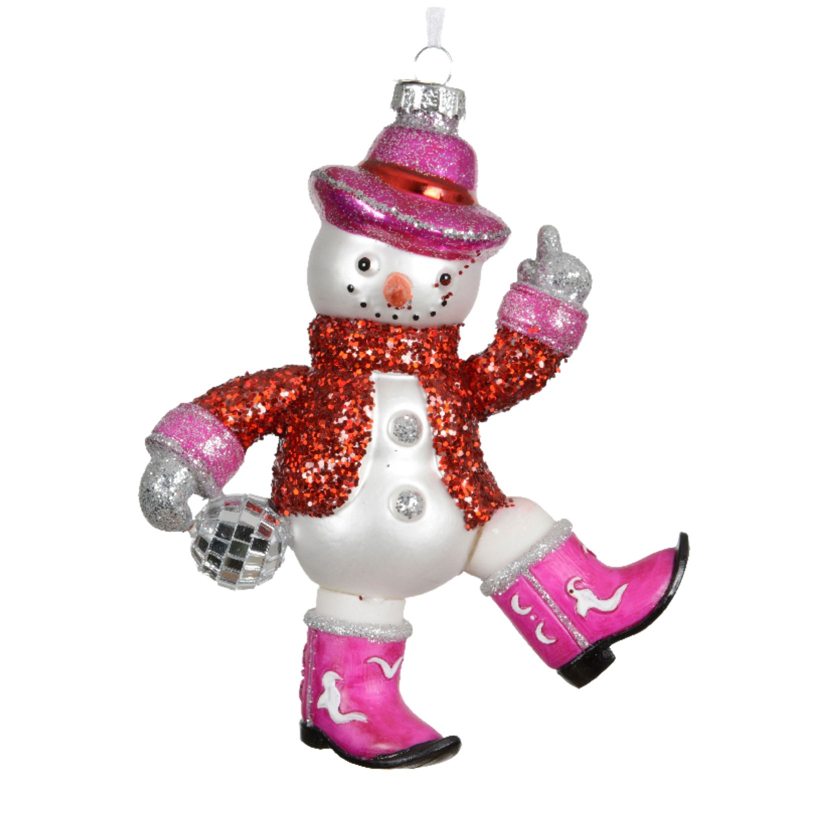 Bombka szklana bałwan disco kowboj 15,8cm