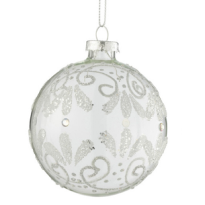 Bombka szklana z biało-srebrnym zdobieniem (8 x 8