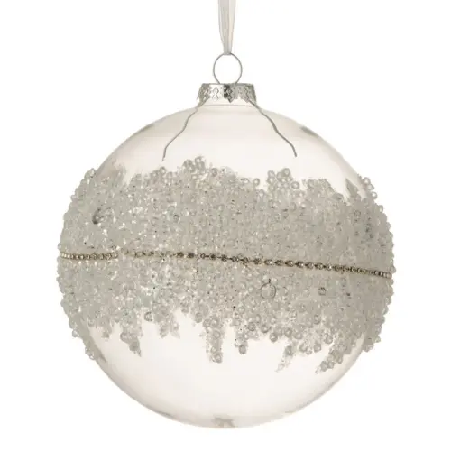 Bombka szklana ze srebrnym zdobieniem cekiny mała