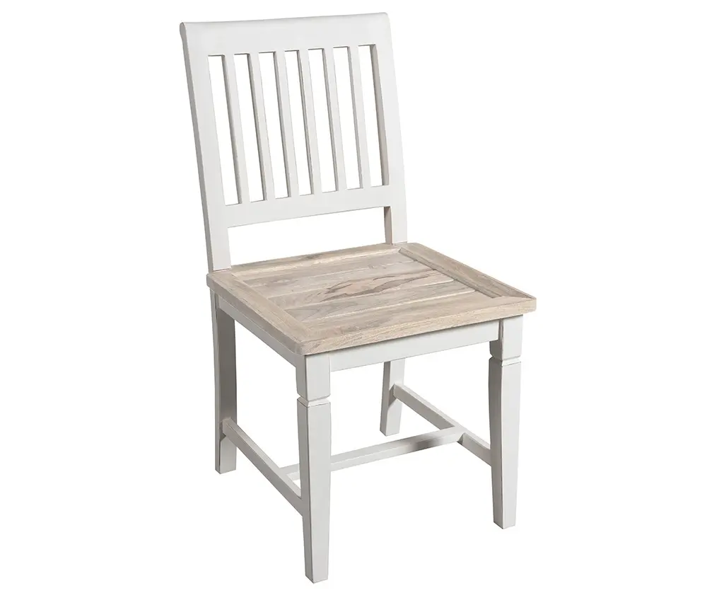 Mebel nie wymaga montażu, składa się z jednego elementu. Siedzisko z drewna mango zostało pobielone oraz zaimpregnowane olejem. Elementy bielone są wykonane z akacji i charakteryzują się niejednolitą kolorystyką przenikających się szarości oraz bladego różu.