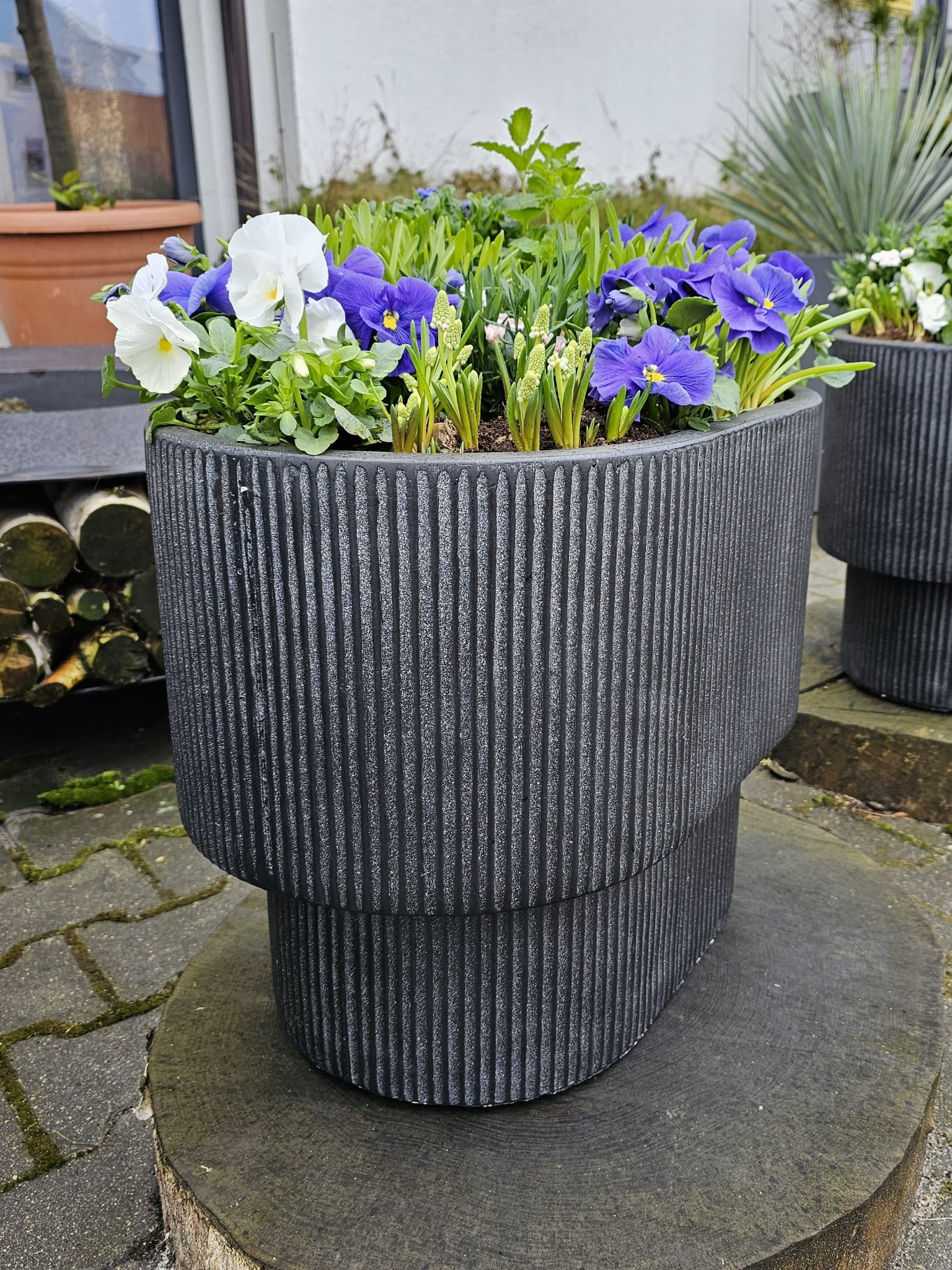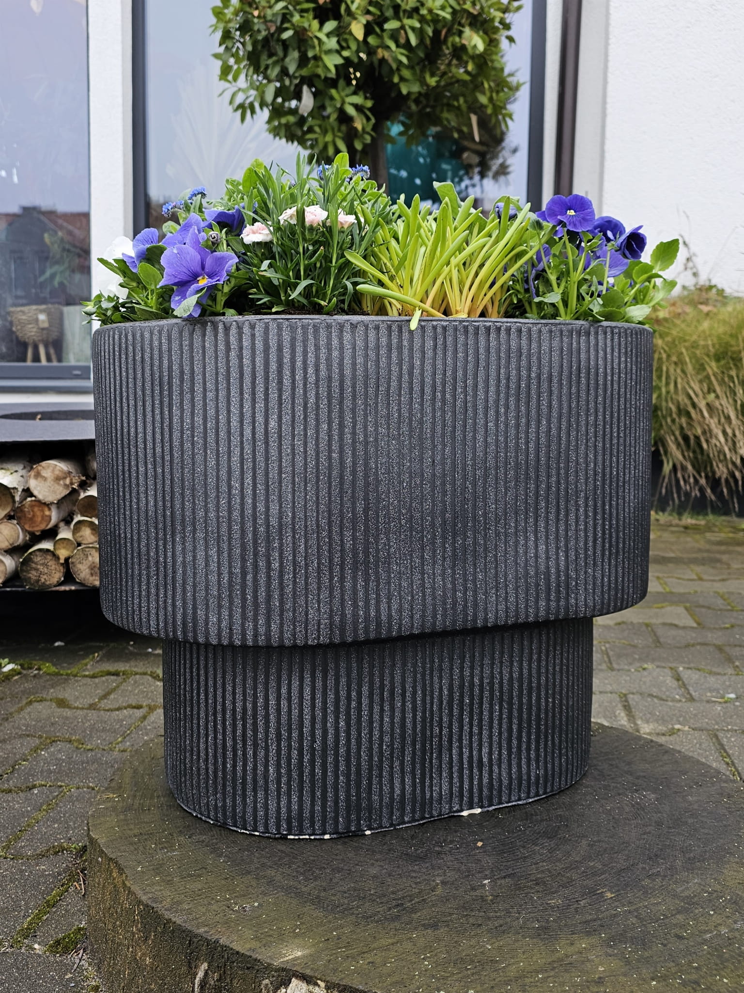 Czarna donica ogrodowa, owalna Quito