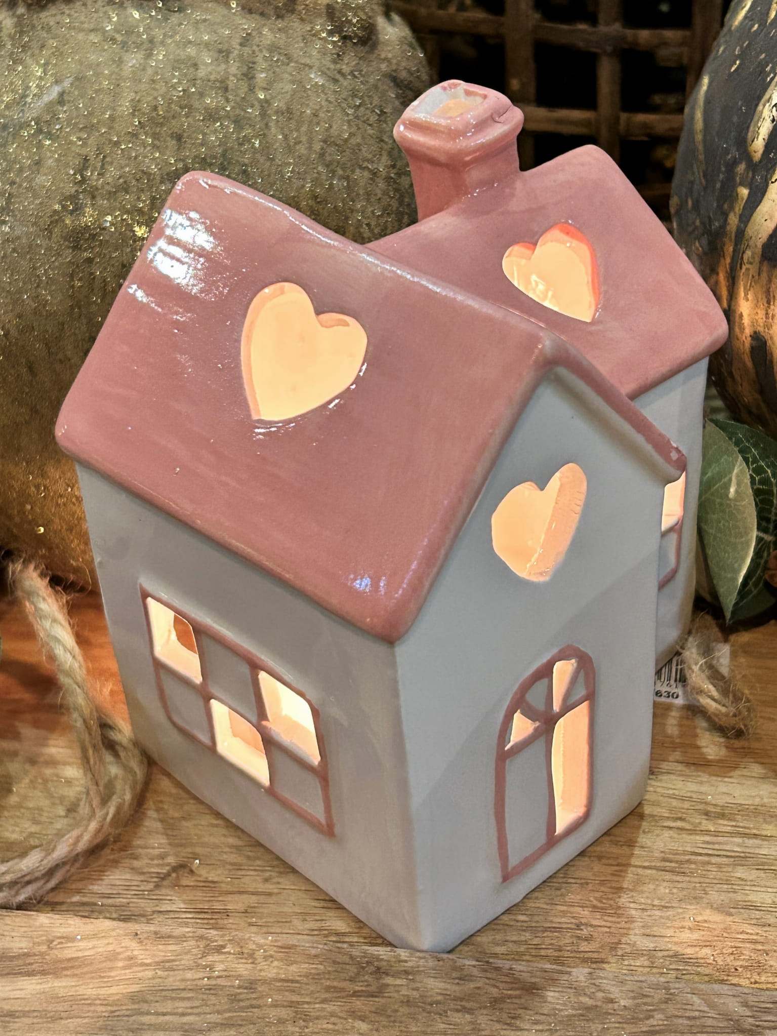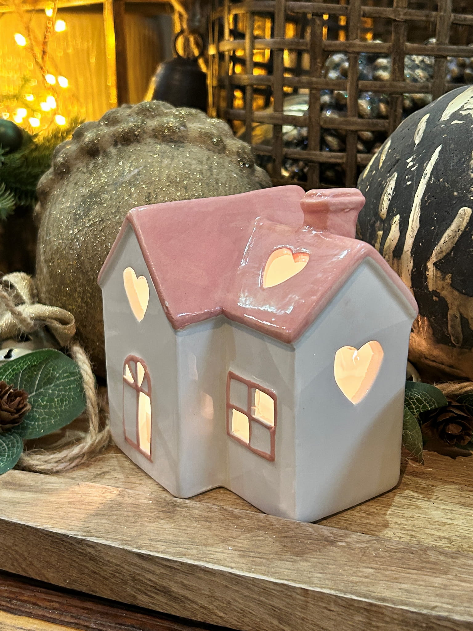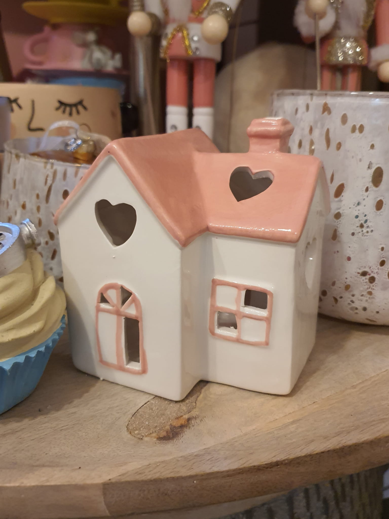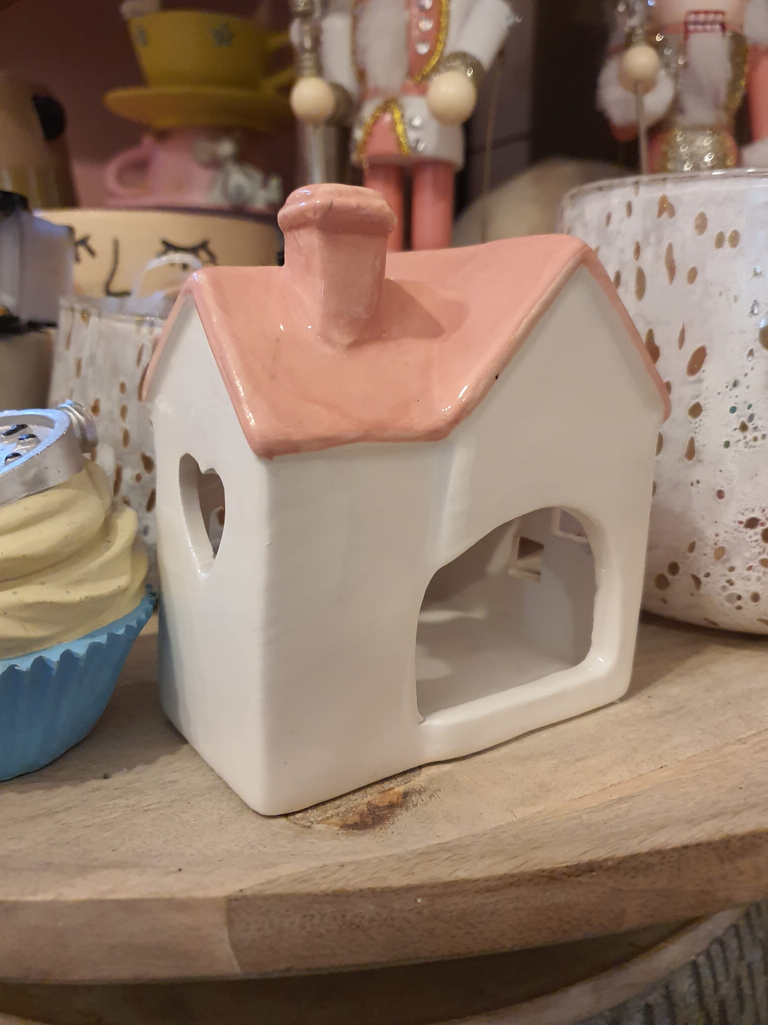 DOMEK CERAMICZNY BIAŁO-RÓŻOWY