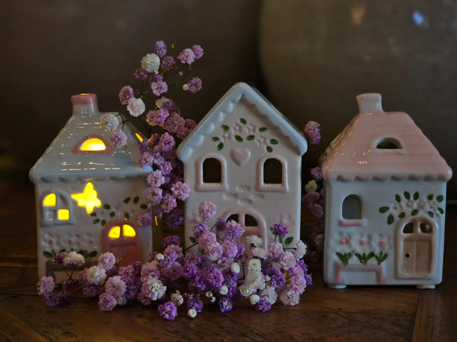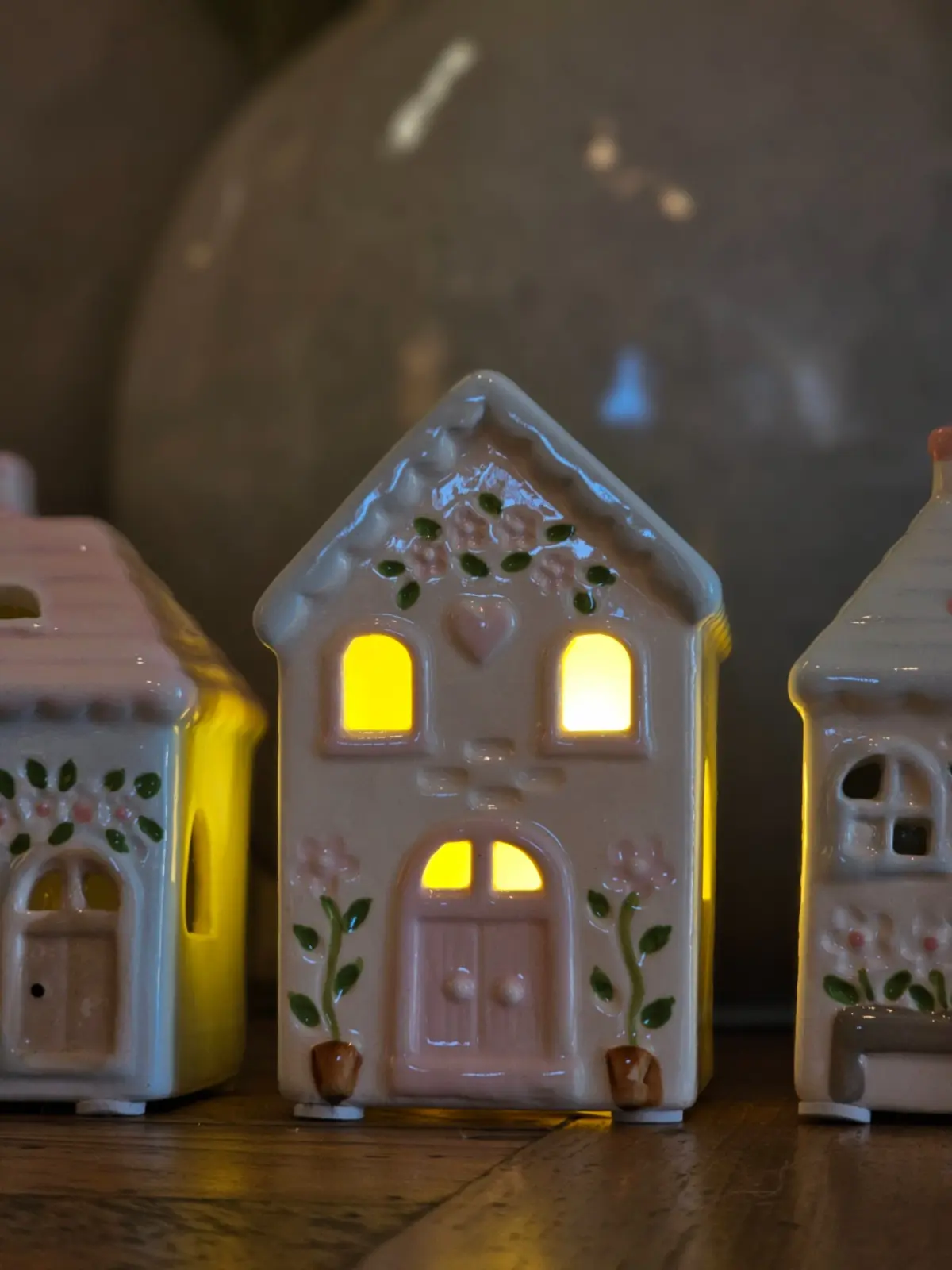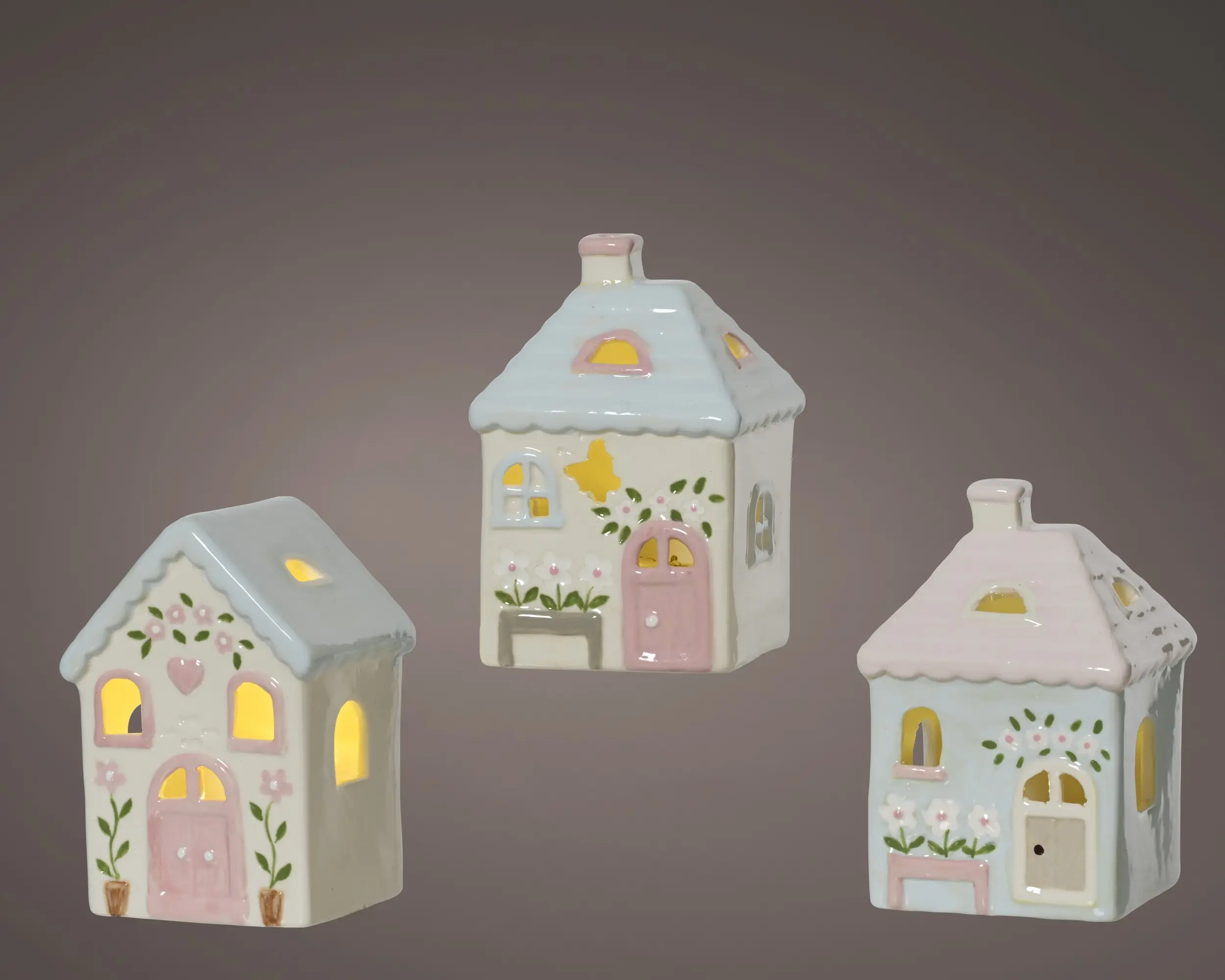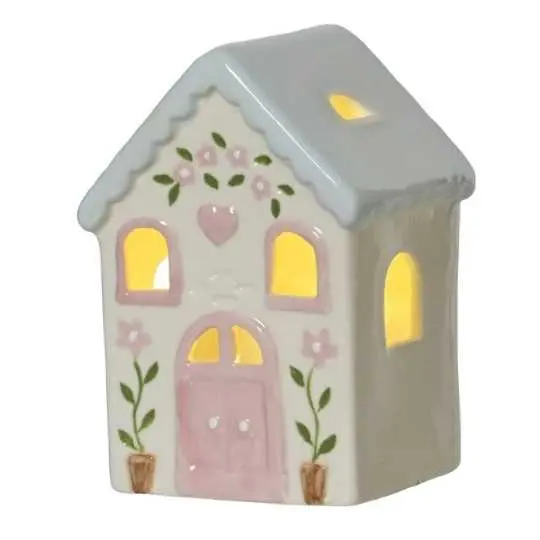 Domek ceramiczny z niebieskim dachem 9,5cm