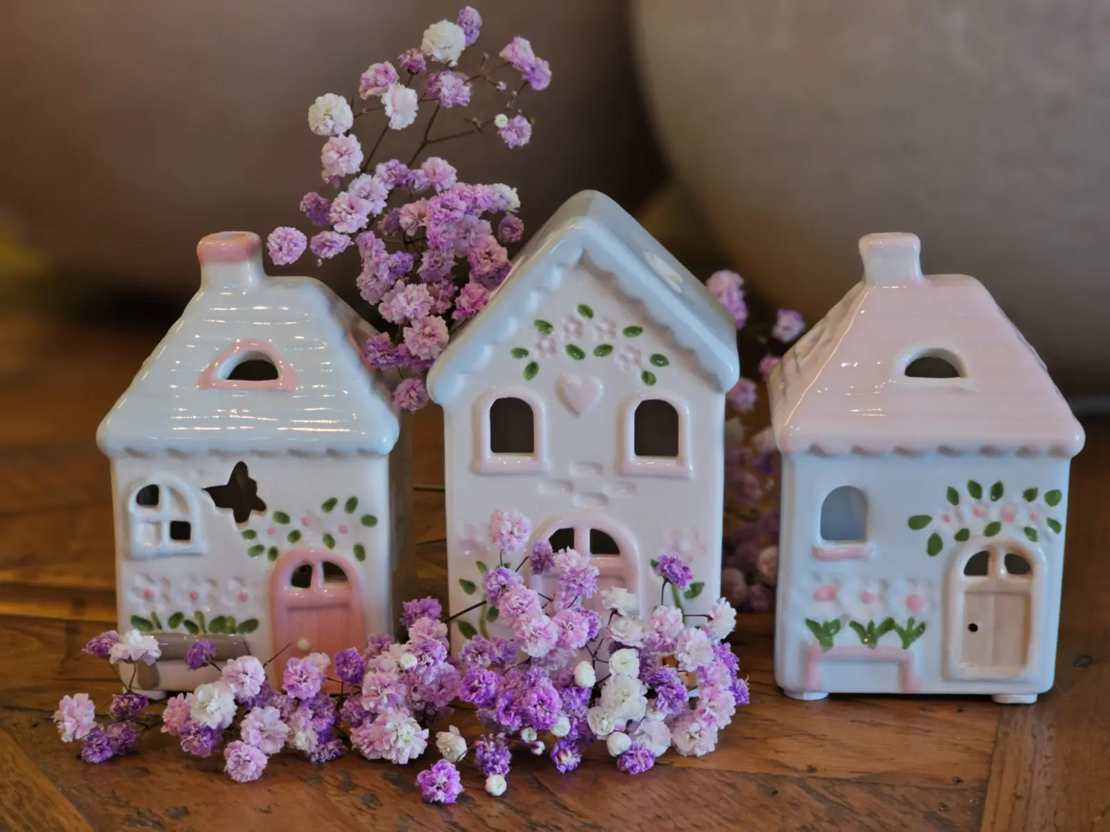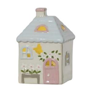 Domek ceramiczny z niebieskim dachem i motylkiem 9,5cm