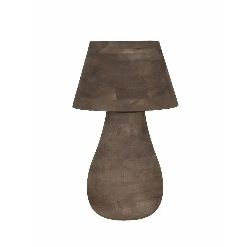 Duża okrągła lampa stołowa Peake Brown z drewna mango PTMD Collection