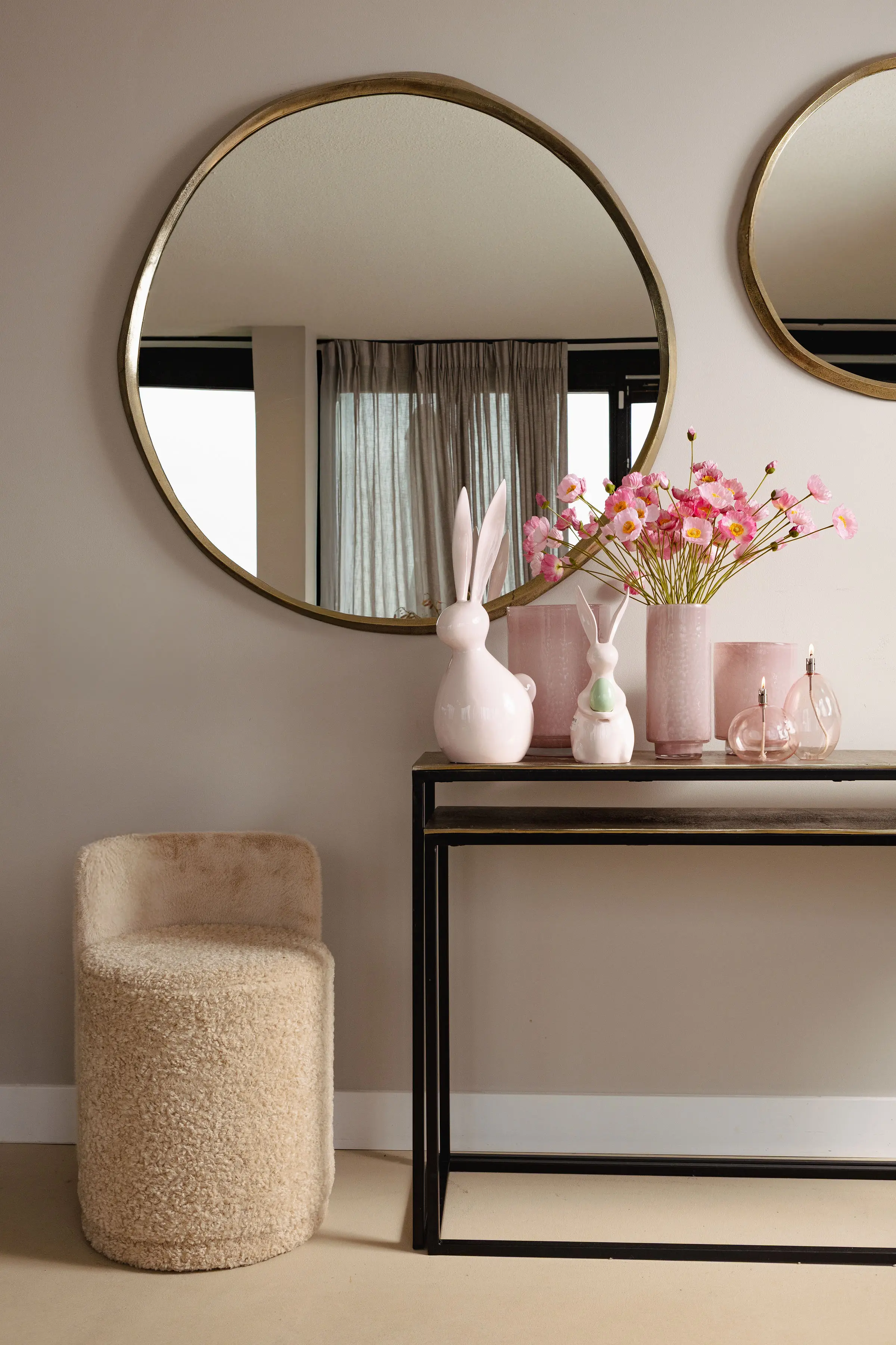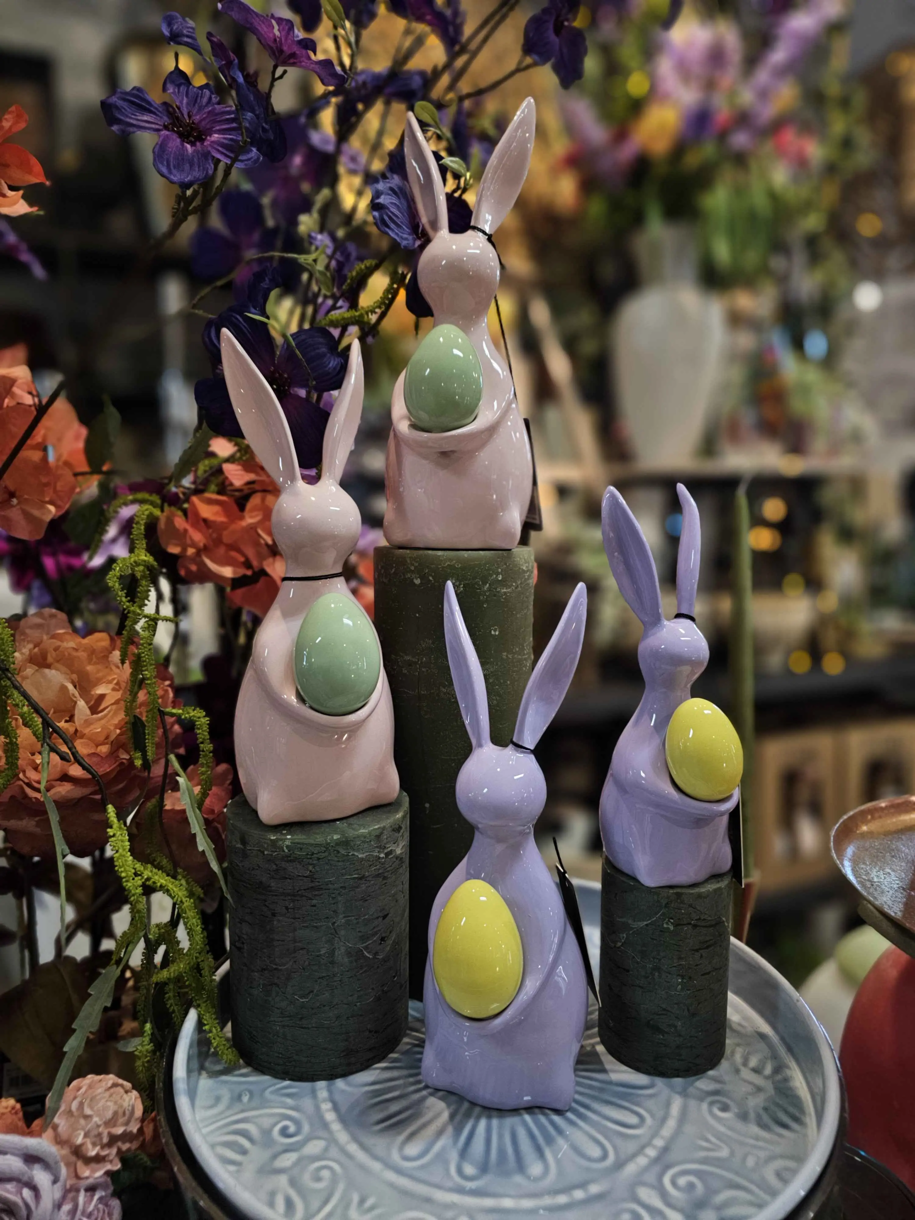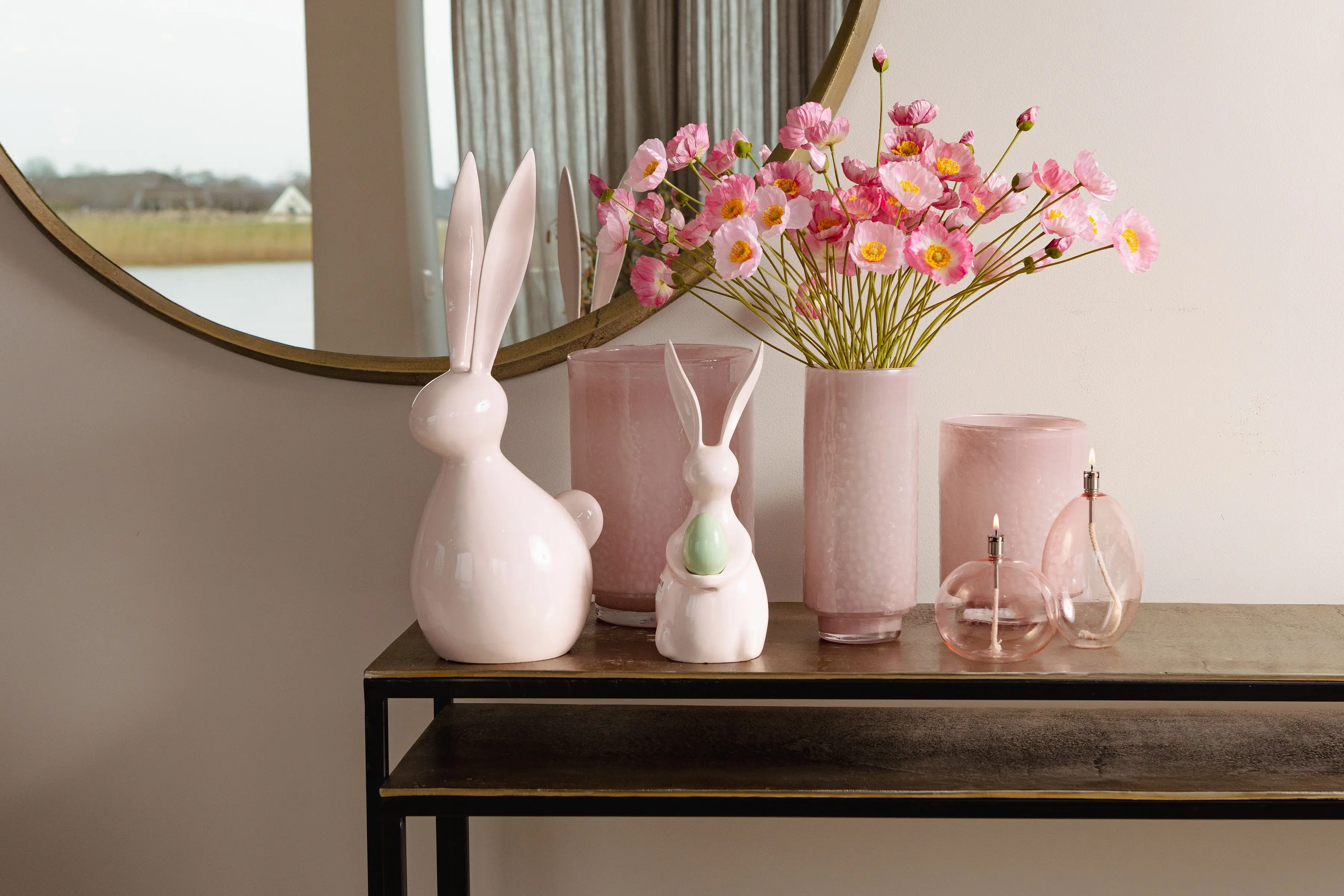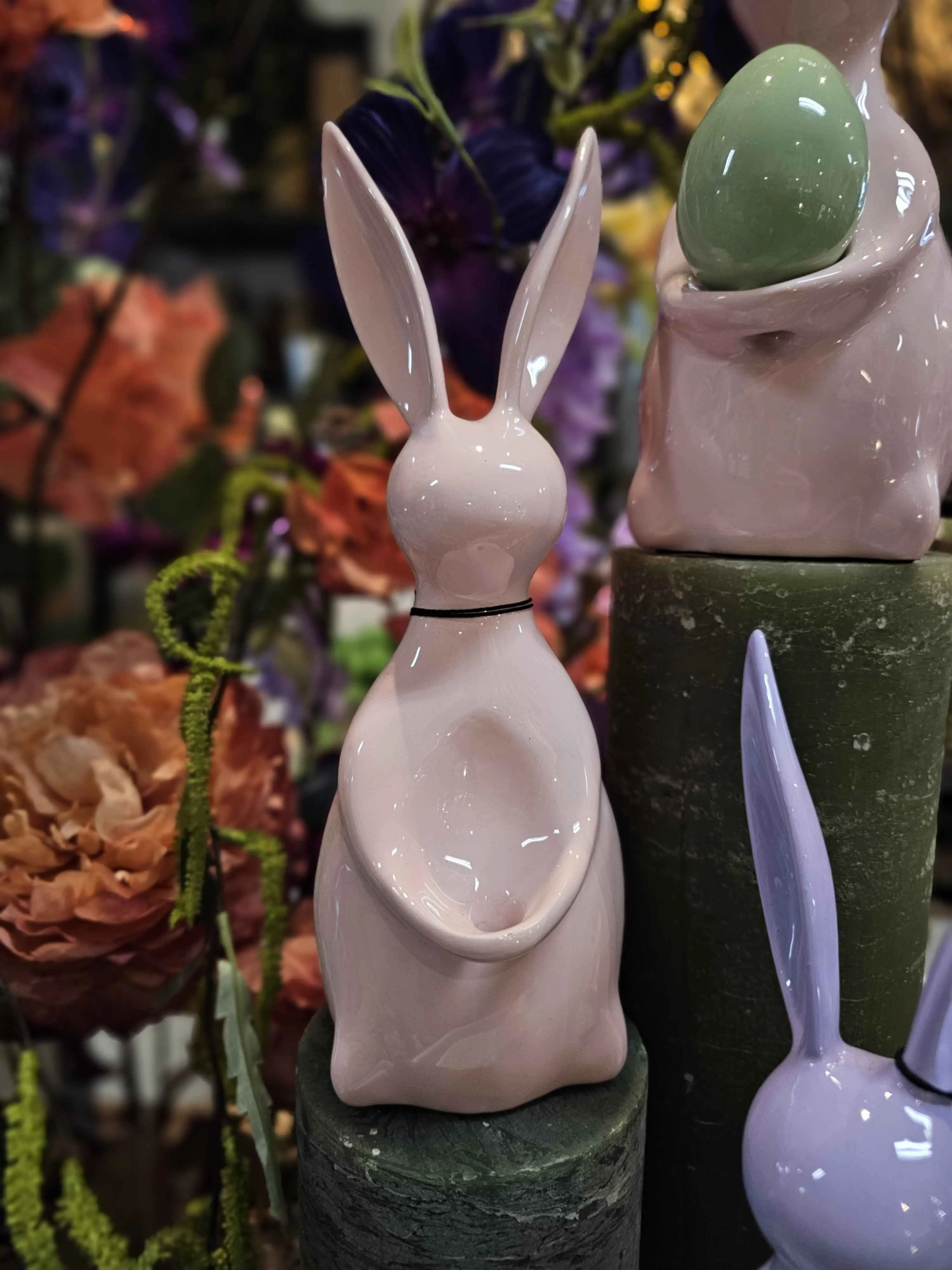 Jasnoróżowa, aluminiowa figurka królik Saedee z jajkiem L