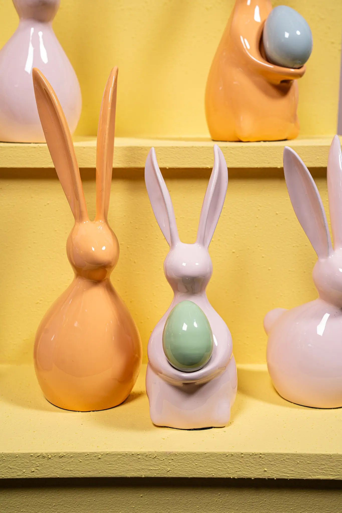 Jasnoróżowa, aluminiowa figurka królik Saedee z jajkiem S