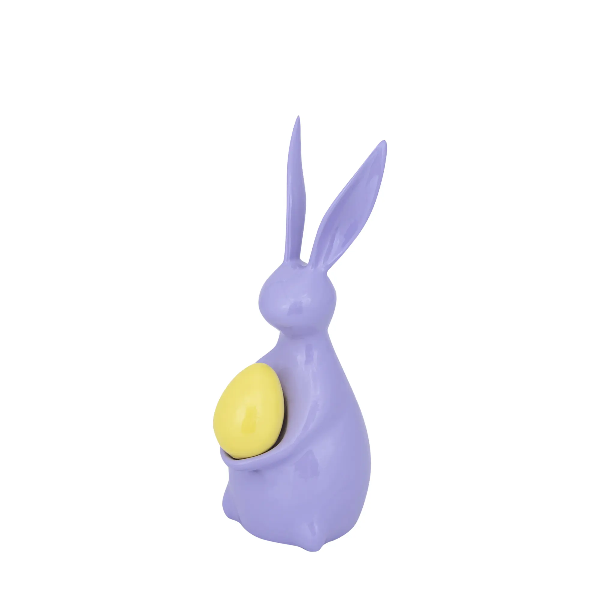 Liliowa, aluminiowa figurka królik Saedee z jajkiem
