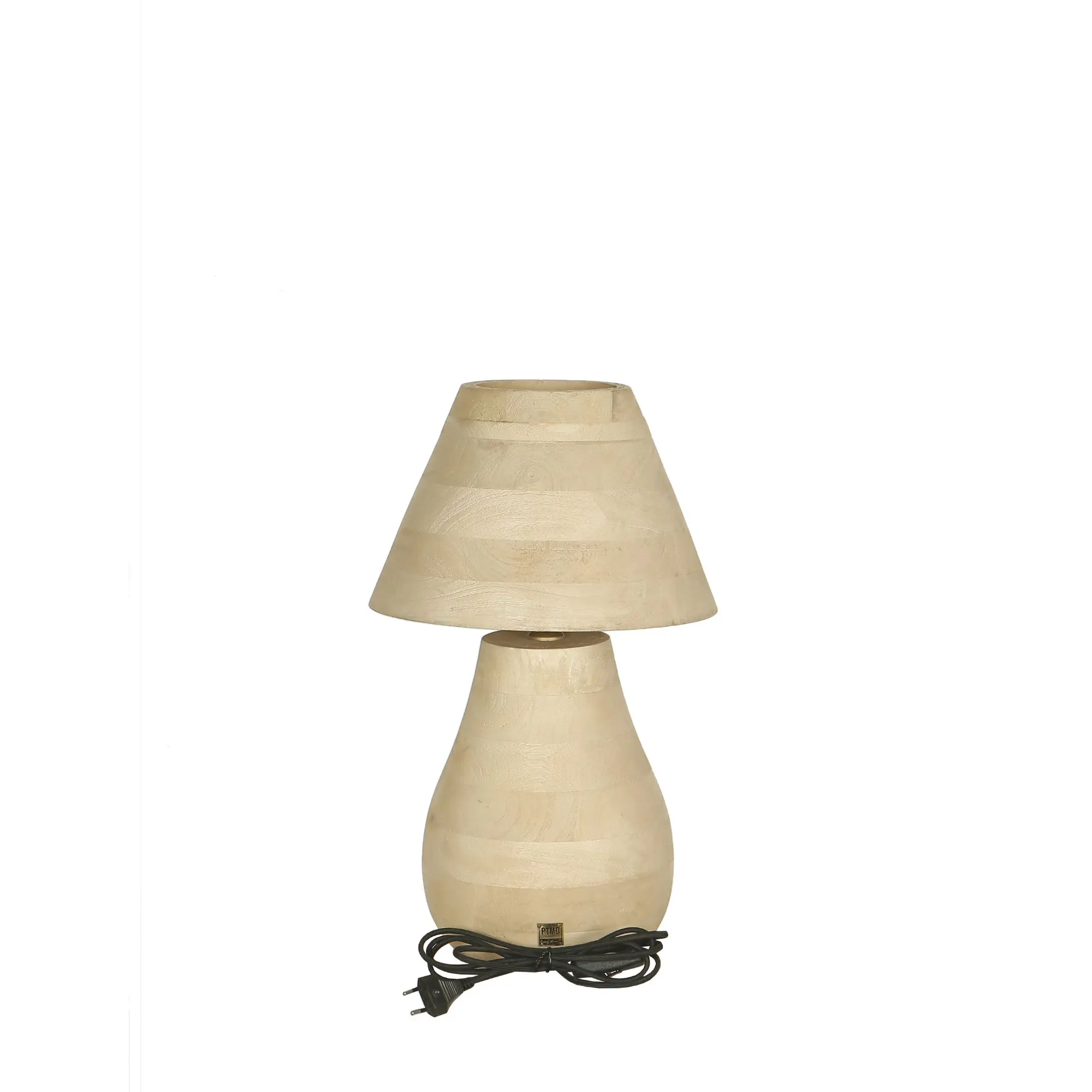 Okrągła lampa stołowa Peake Natural z drewna mango, niska PTMD Collection