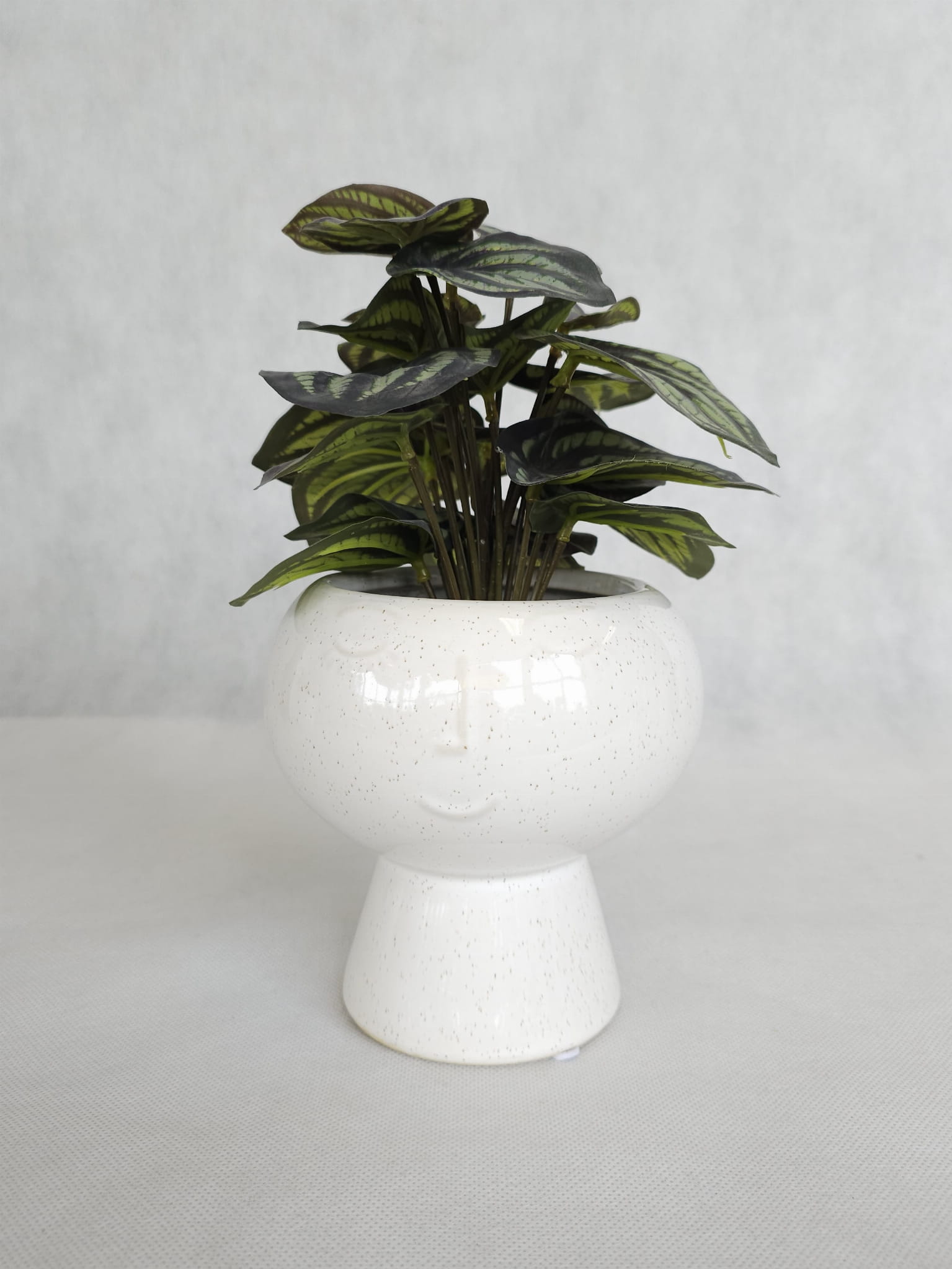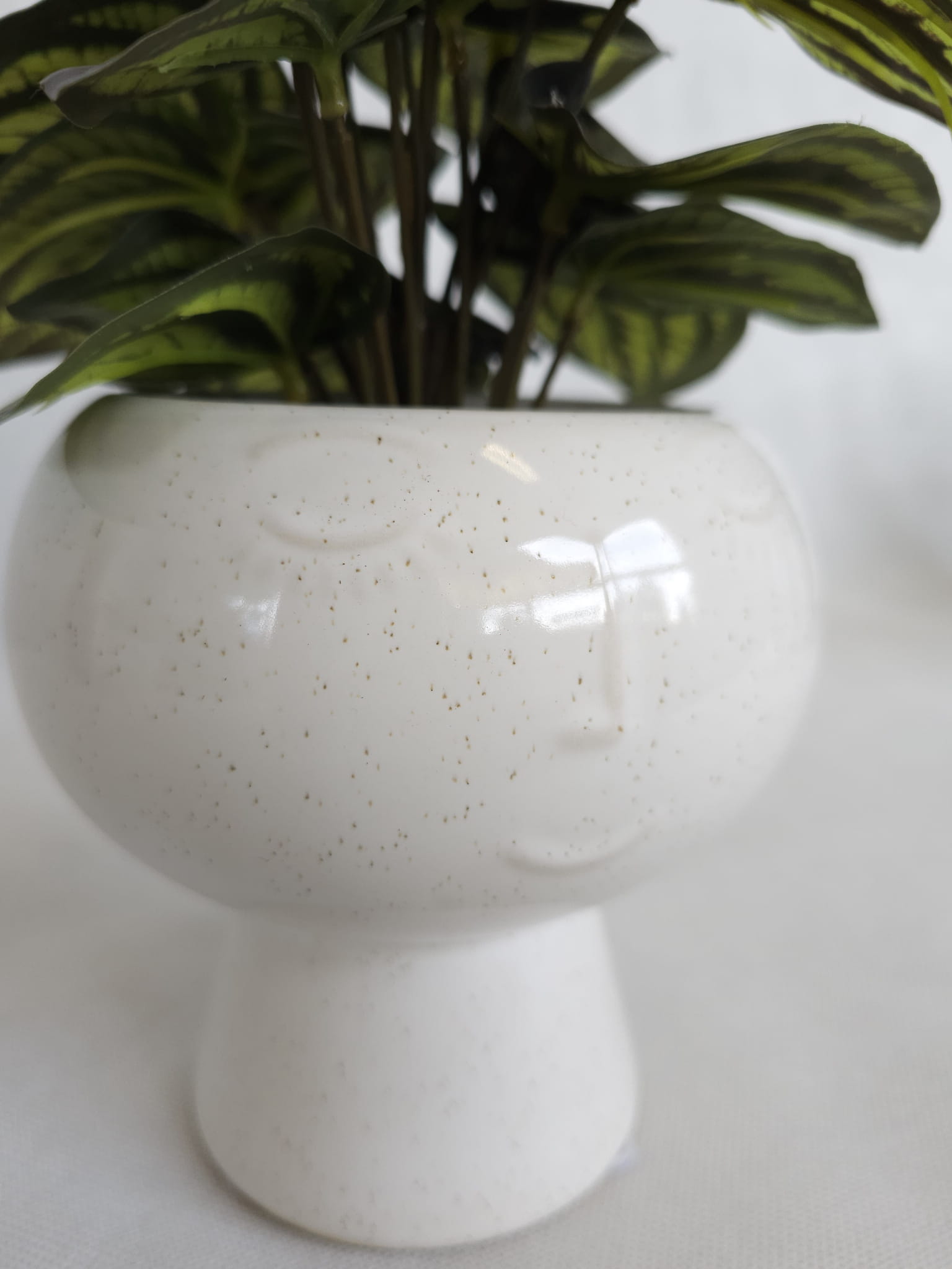 Osłonka na nóżce z twarzą w białym kolorze to wyjątkowy element dekoracyjny, który łączy w sobie klasyczną prostotę z artystycznym akcentem. Jej delikatna biel oraz subtelny motyw twarzy nadają jej wyjątkowego charakteru, który wprowadza do wnętrza atmosferę spokoju, elegancji i artystycznej wyrafinowanej prostoty.
