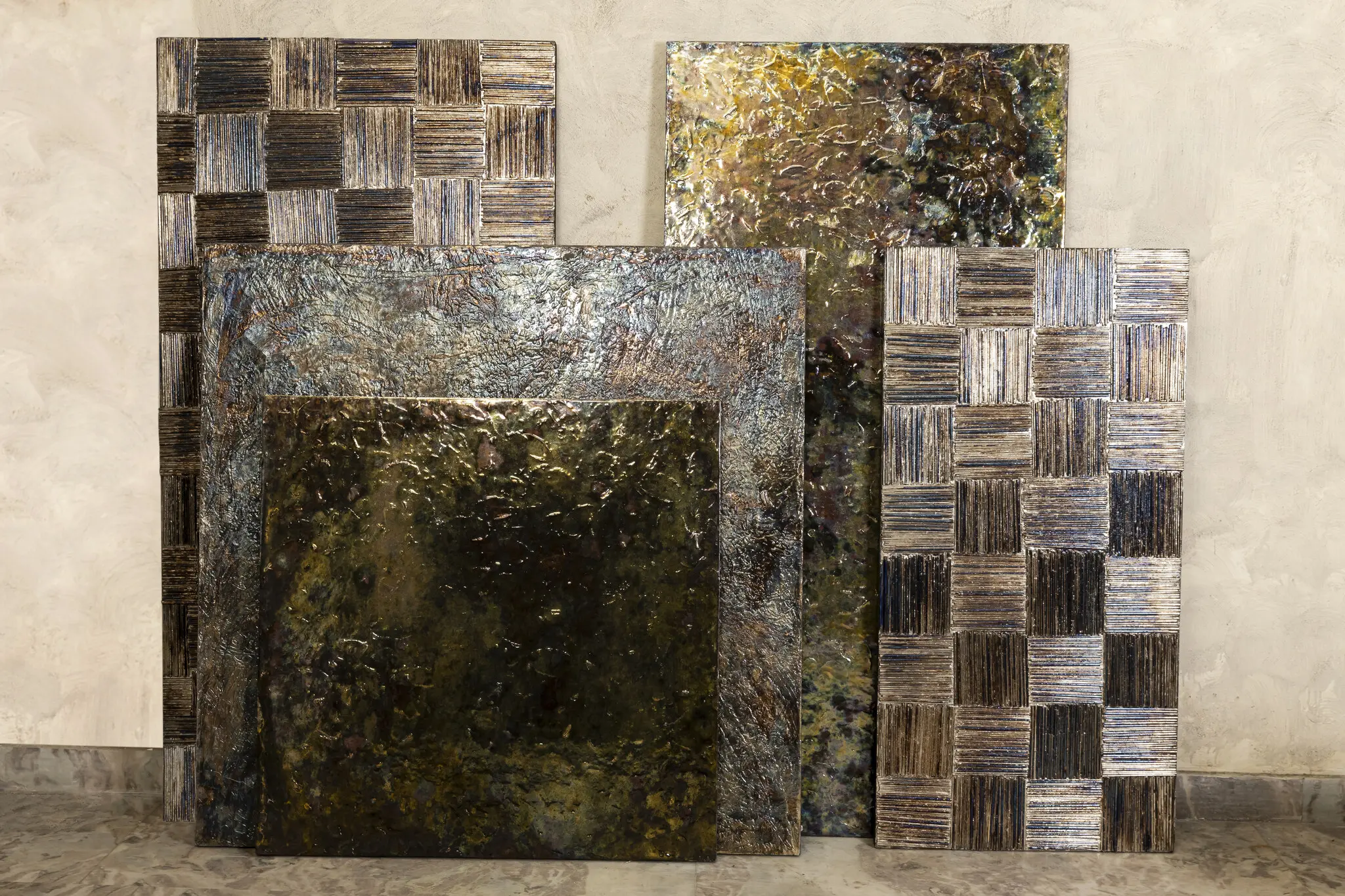 Panel ścienny Sukhmia Gunmetal MDF błyszczący kwadratowy L PTMD Collection
