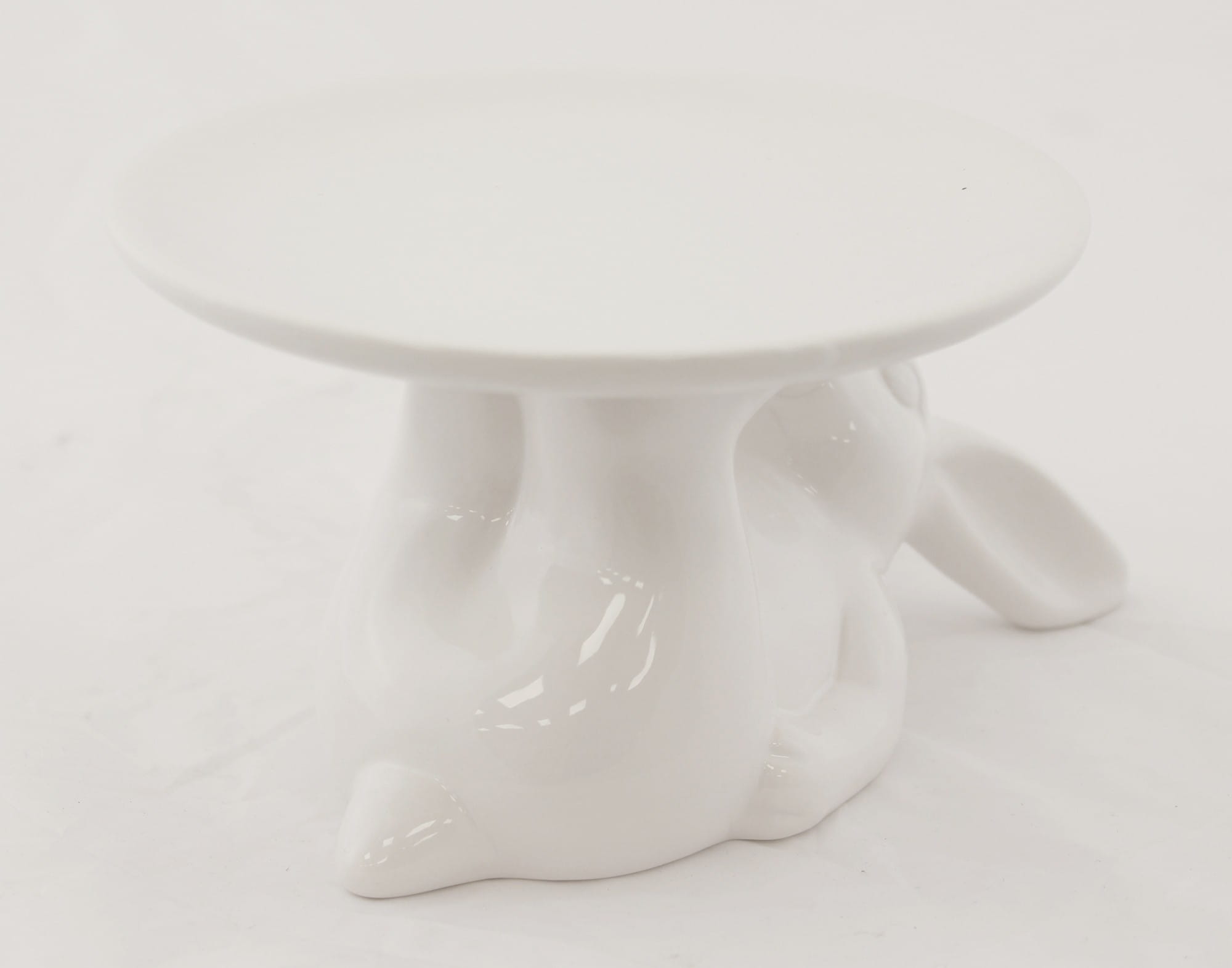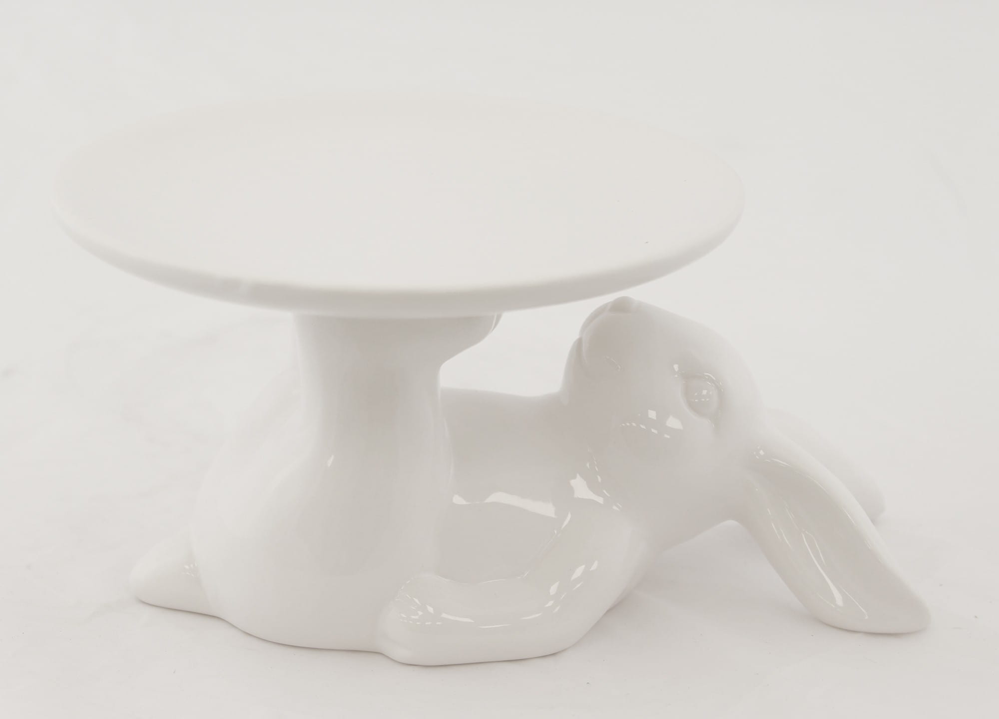 Powitaj świętami z naszą pomysłową paterą ceramiczną na Wielkanoc! Przedstawia ona uroczego zajączka, który zrelaksowany leży na plecach, trzymając na swoich stópkach ułożony talerz.