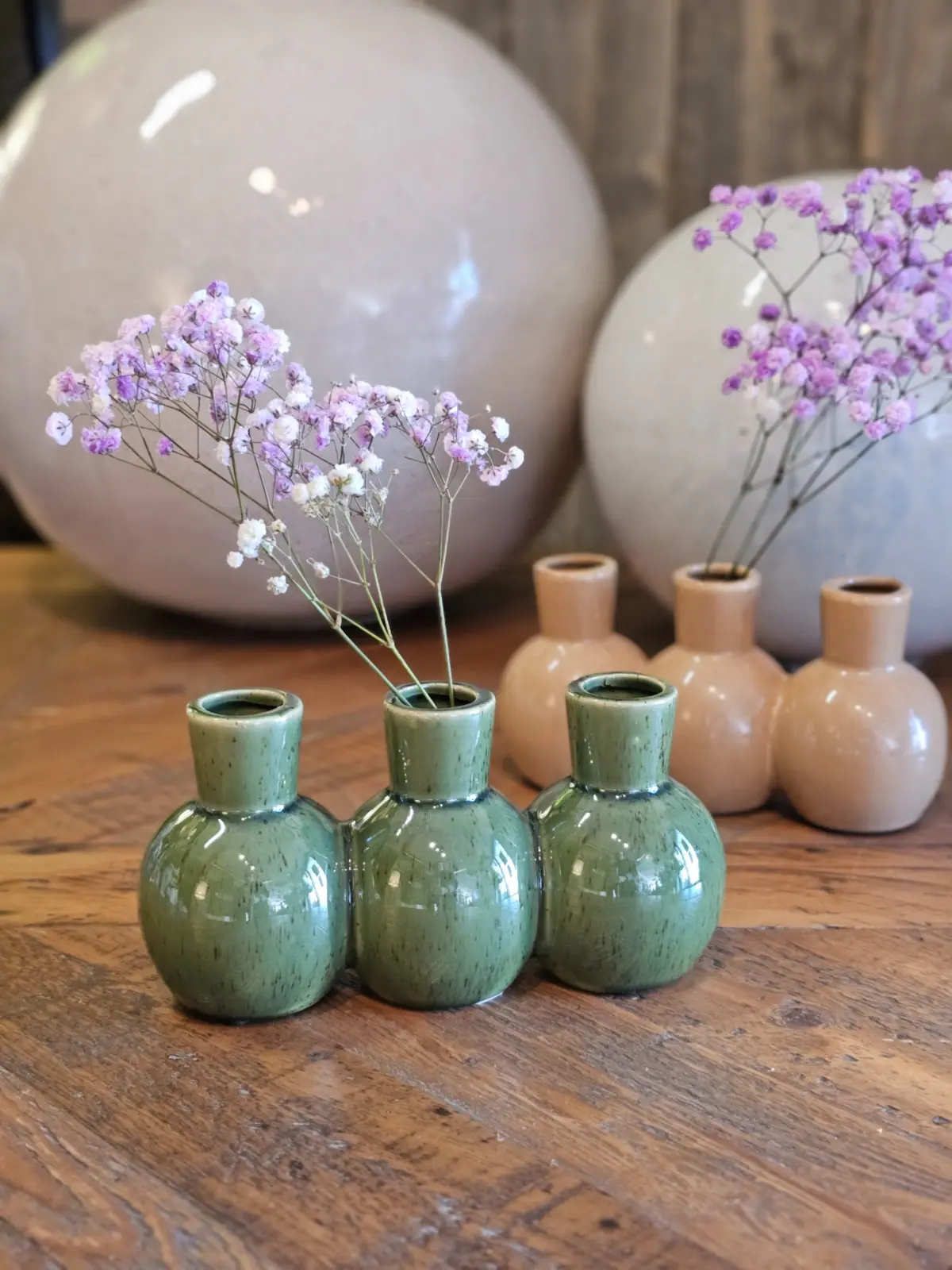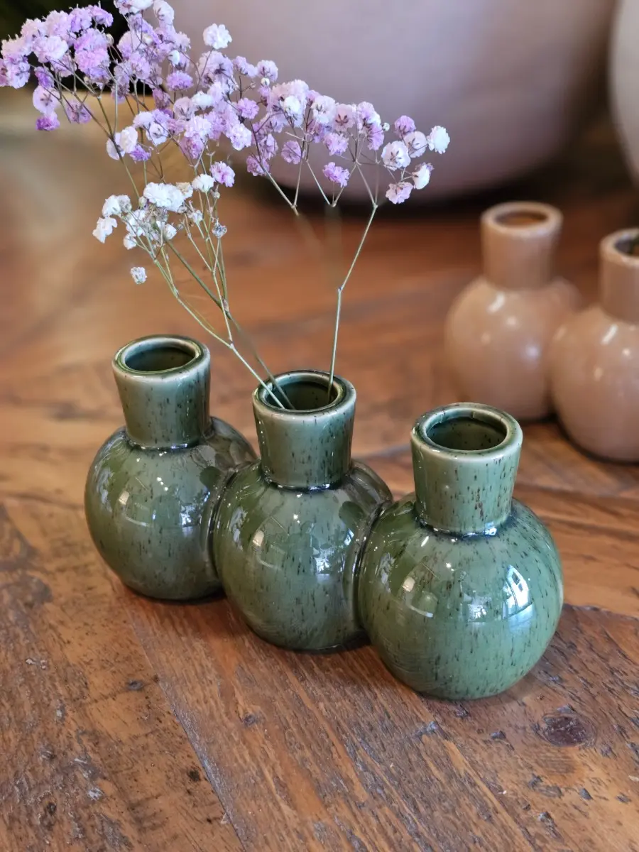 Potrójny wazon porcelanowy 21cm zielony