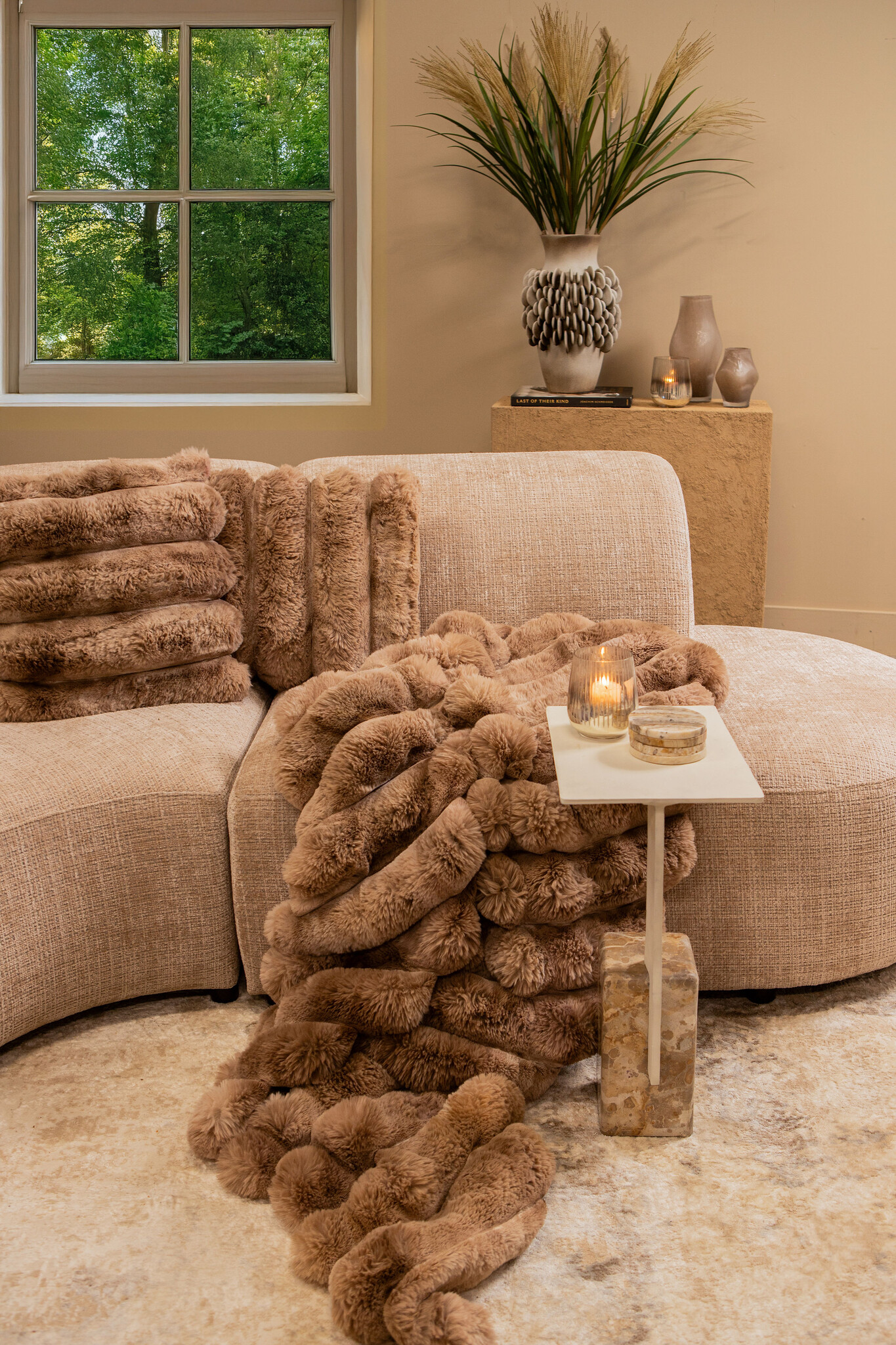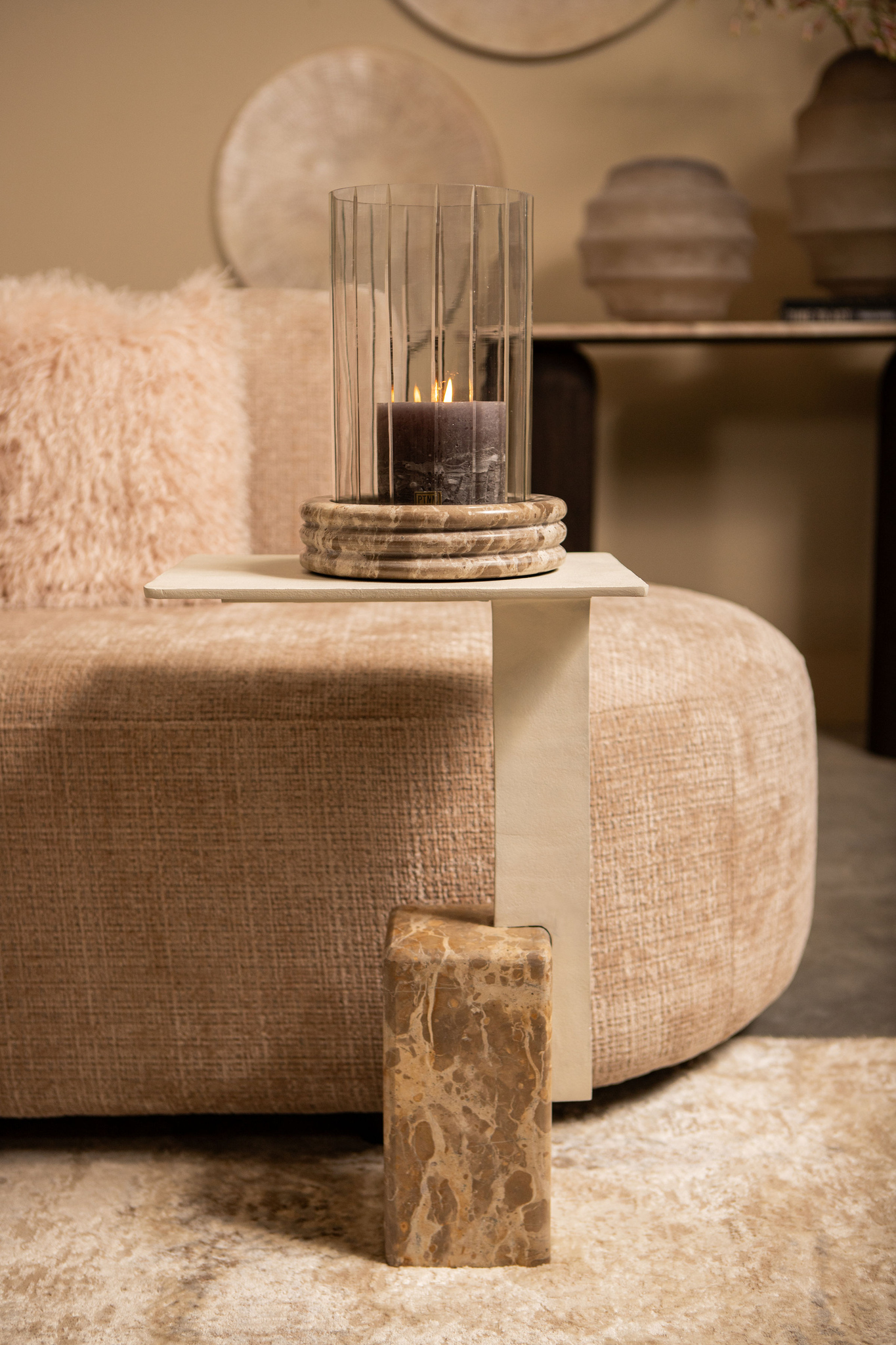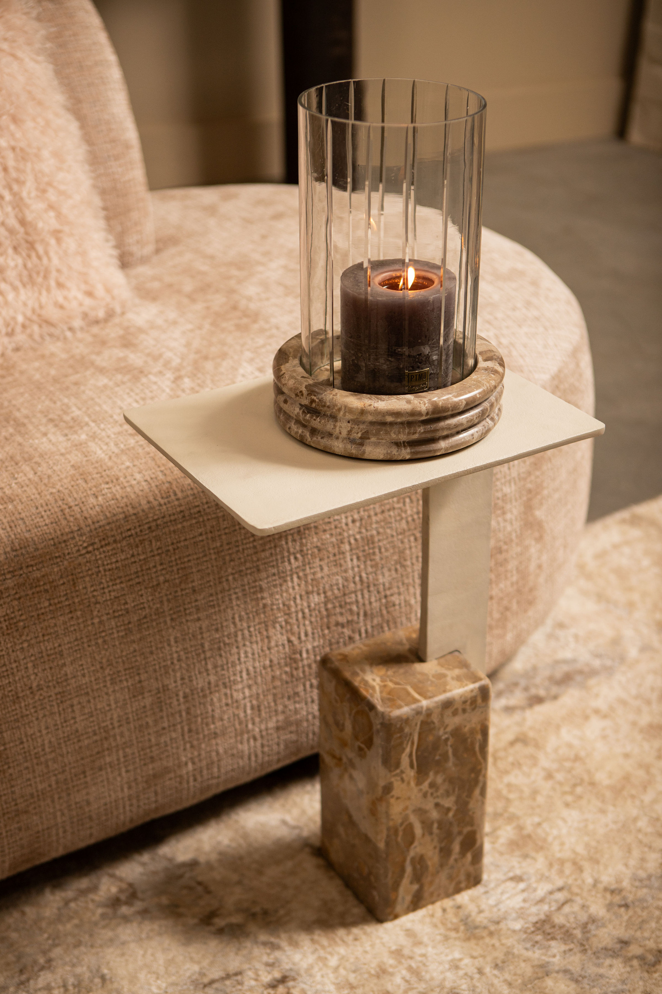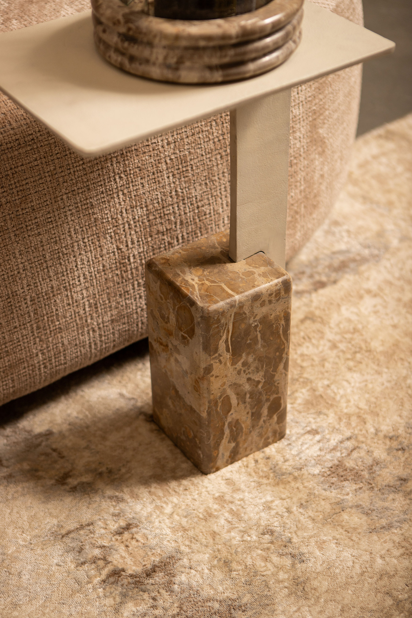 Stolik kawowy Ebe Beige Marble z blatem aluminiowym PTMD Collection