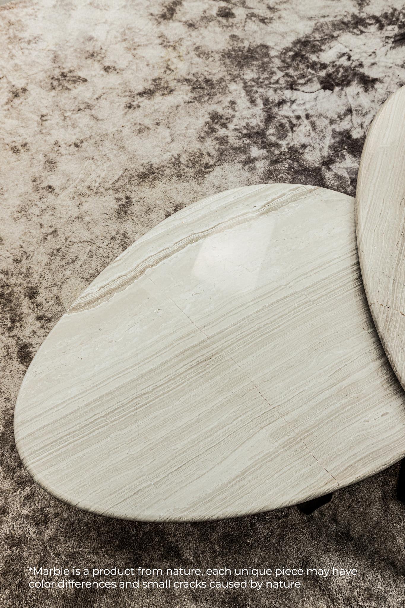 Stolik kawowy Muka niski, ciemnoszara podstawa z białego marmuru PTMD Collection
