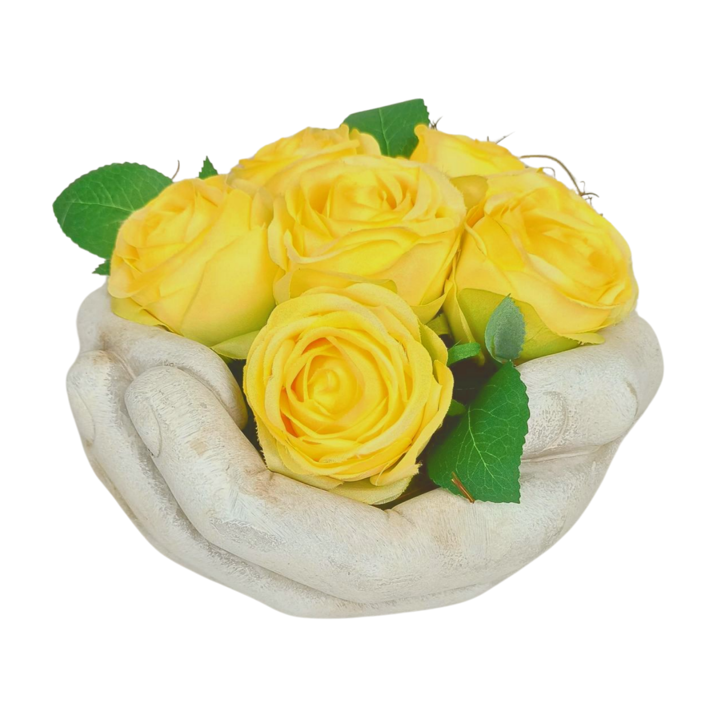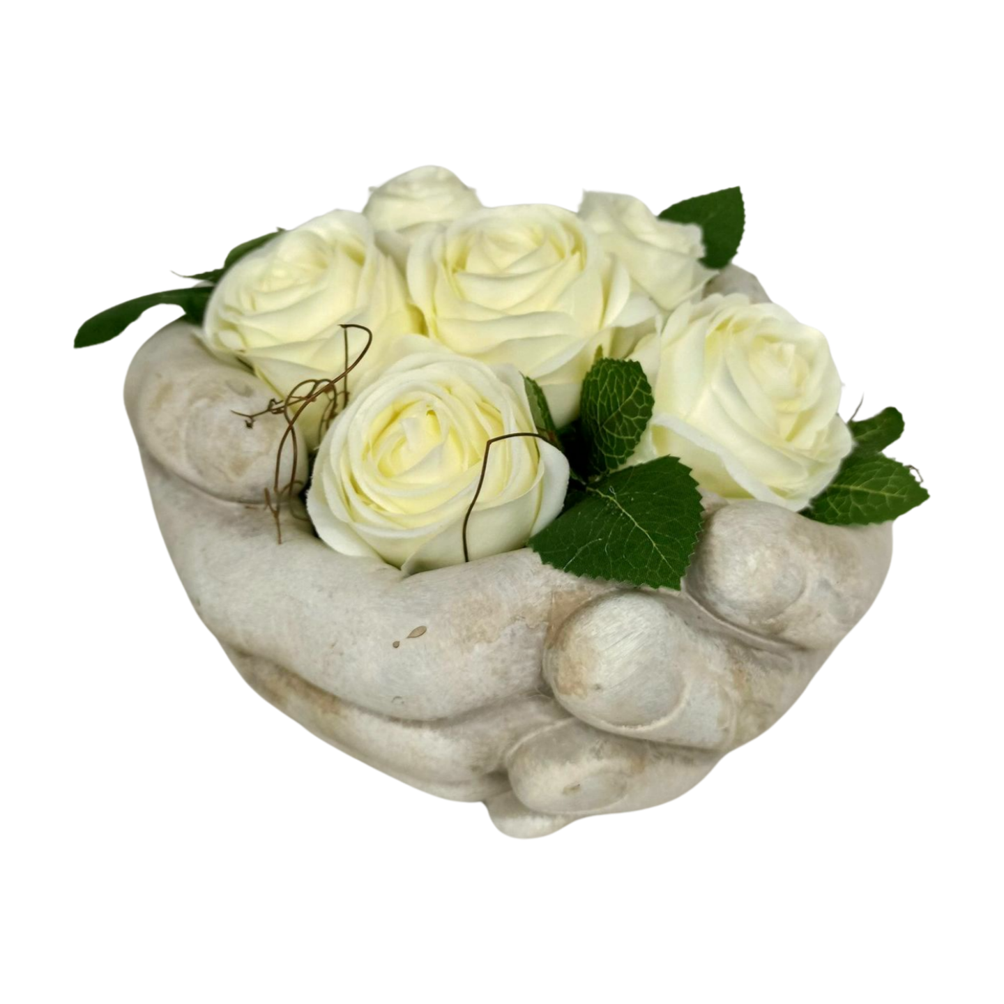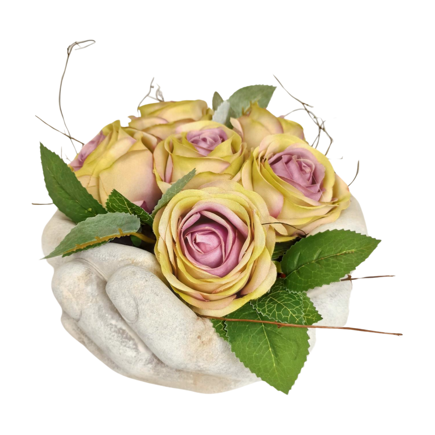 Stroik na grób ze sztucznych kwiatów - cementowe dłonie 5