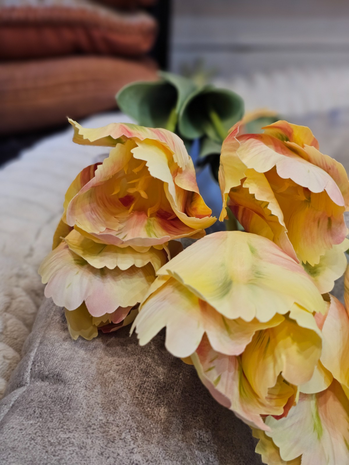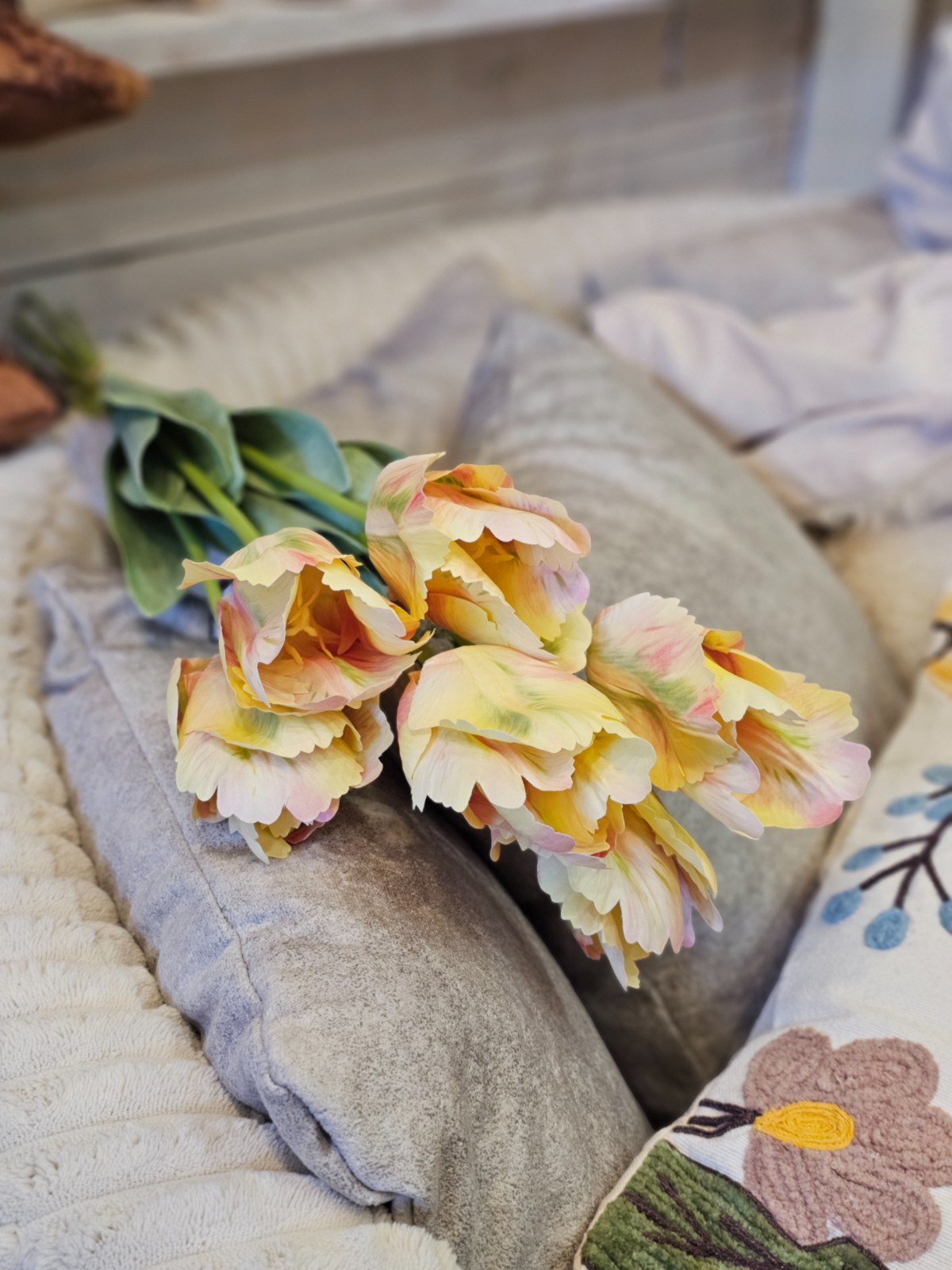 Sztuczny kwiat tulipan papuzi XL żółty