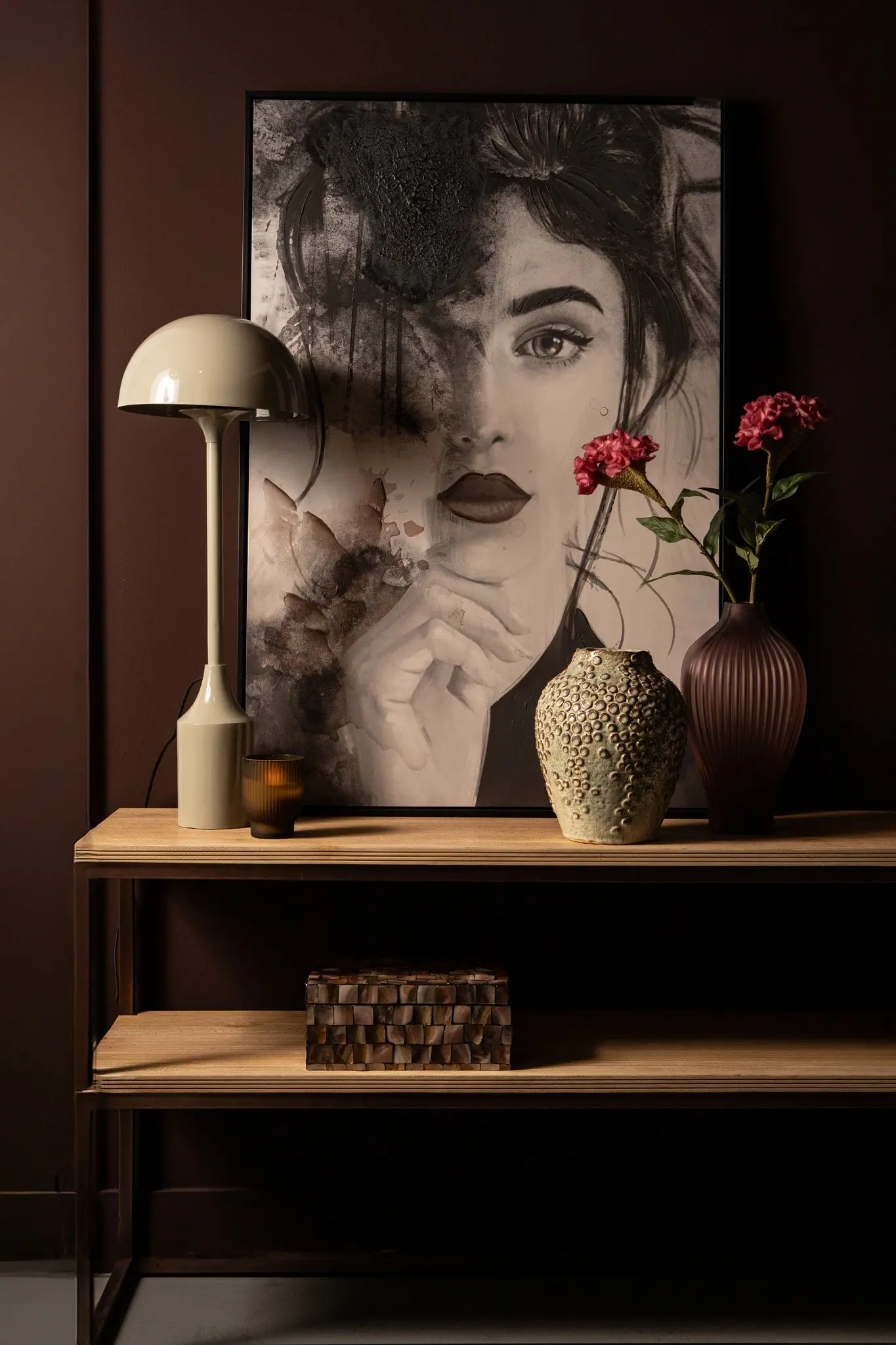 Tanaiya Kremowa okrągła lampa stołowa z żelaza z okrągłym kloszem PTMD Collection