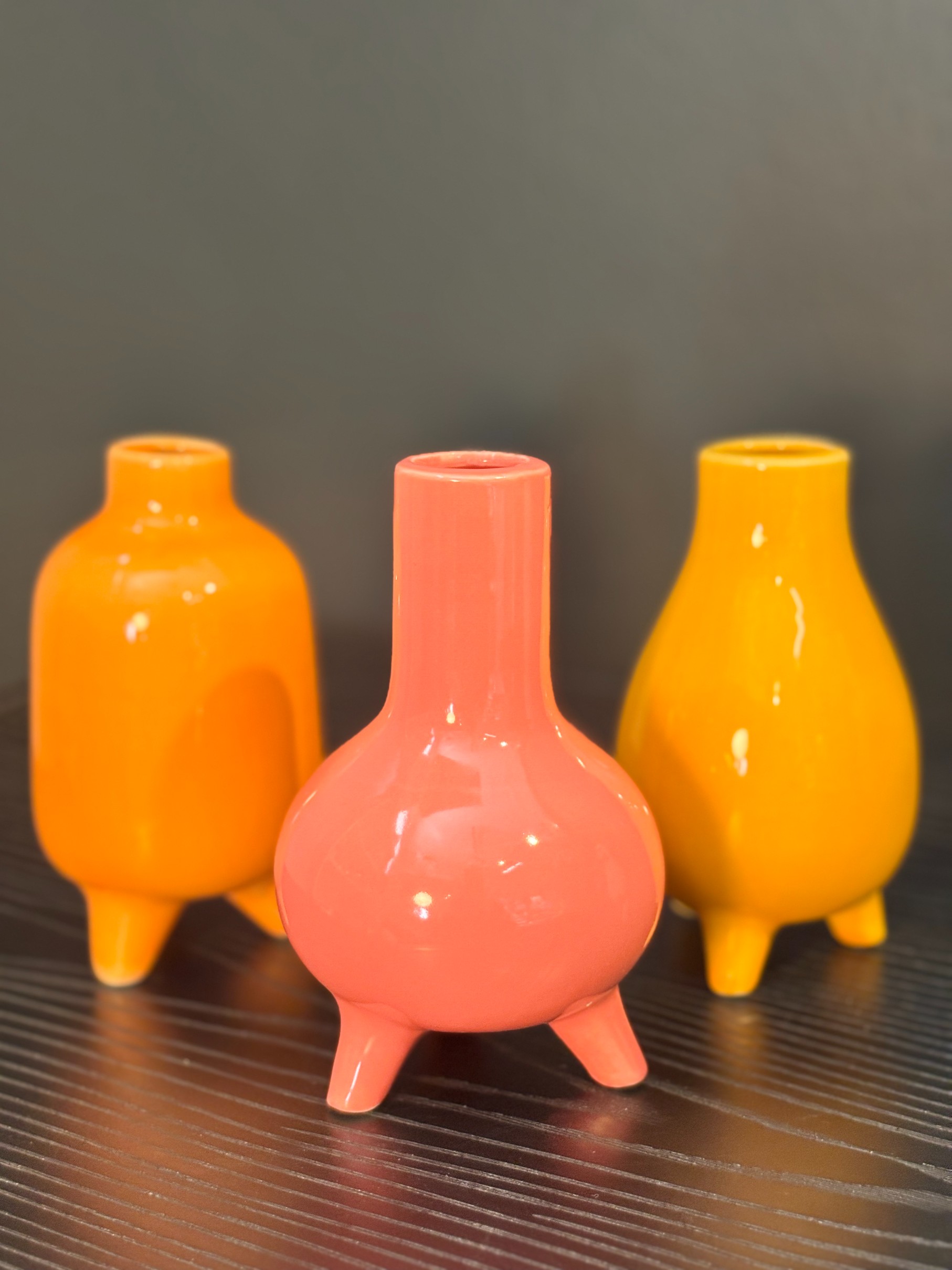 Wazon porcelanowy na nóżkach czerwony 13cm