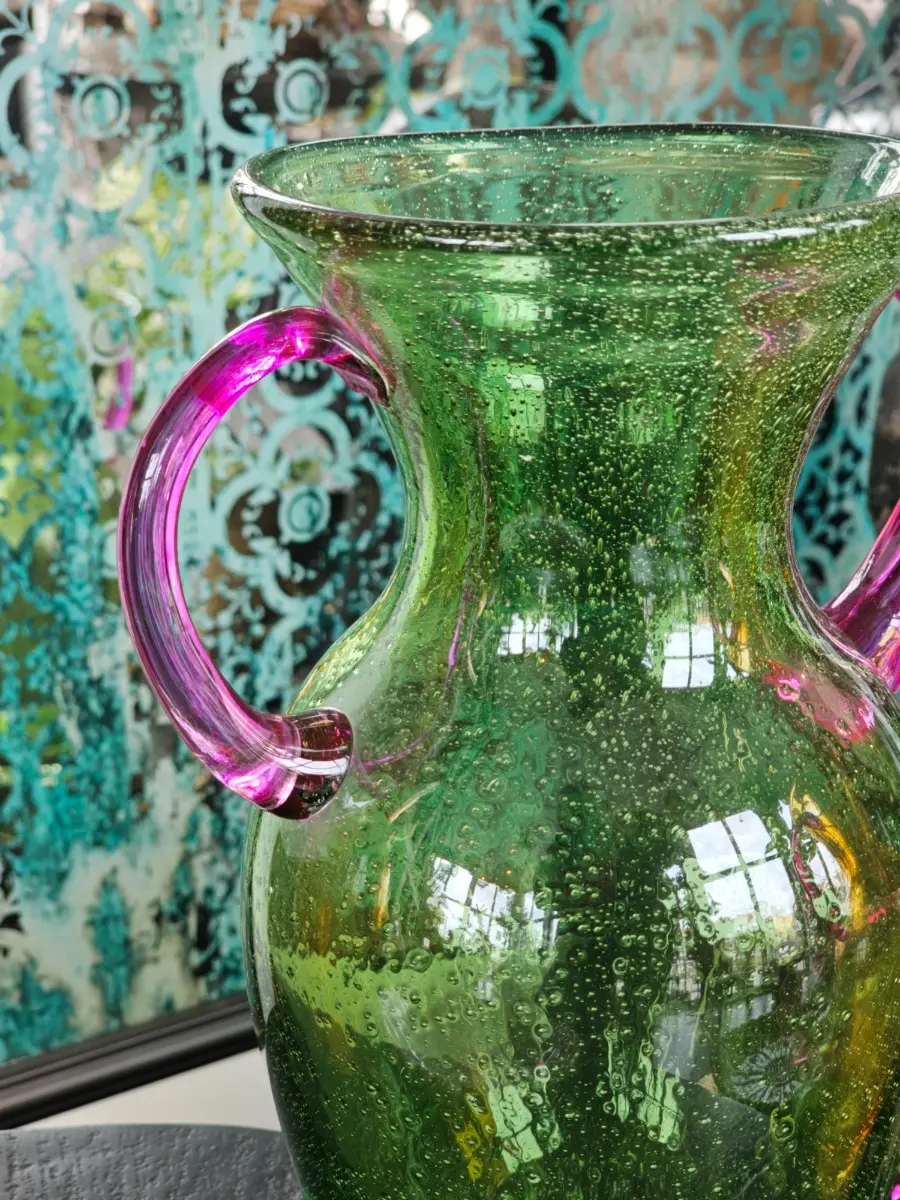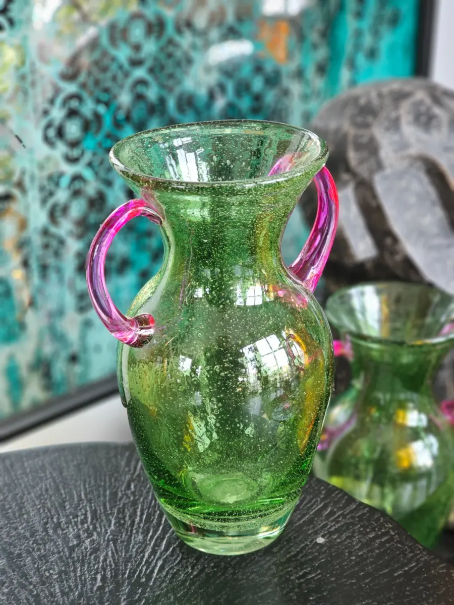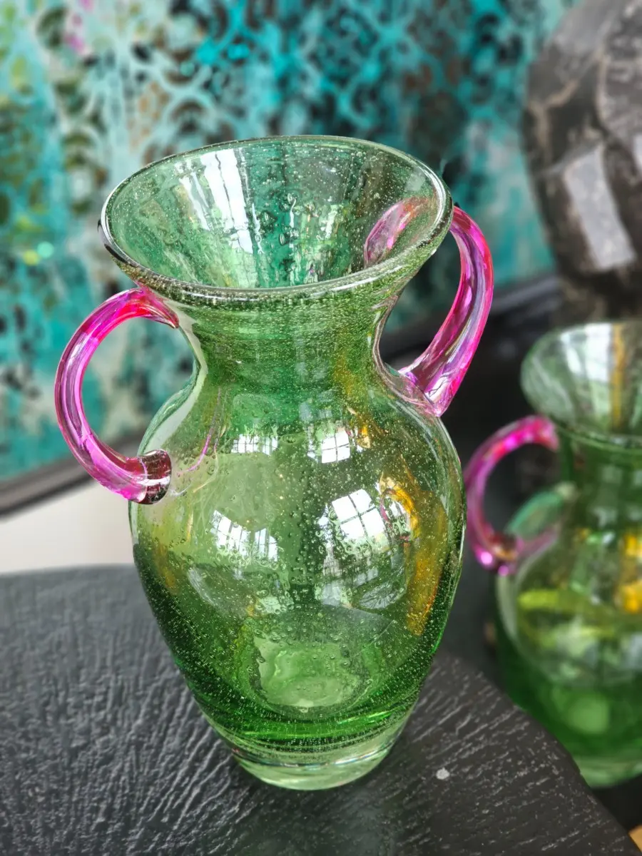 Wazon szklany zielony z uchwytami