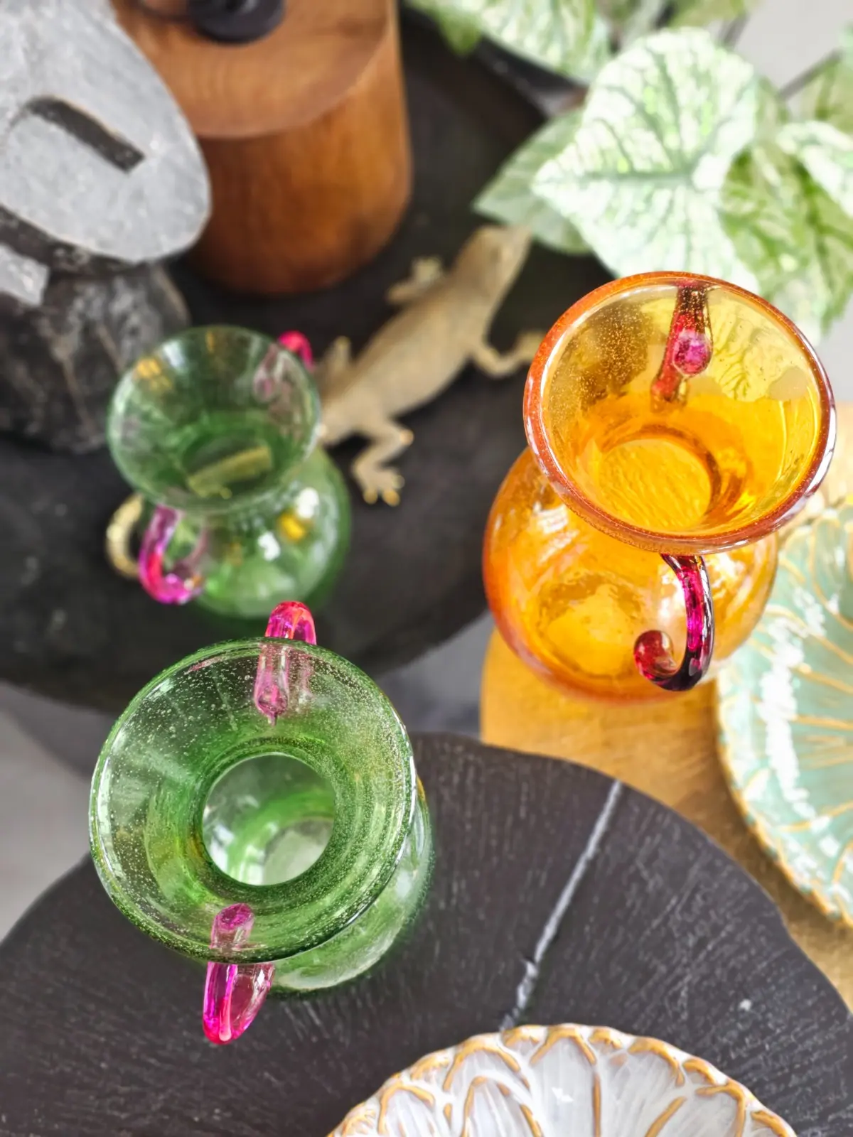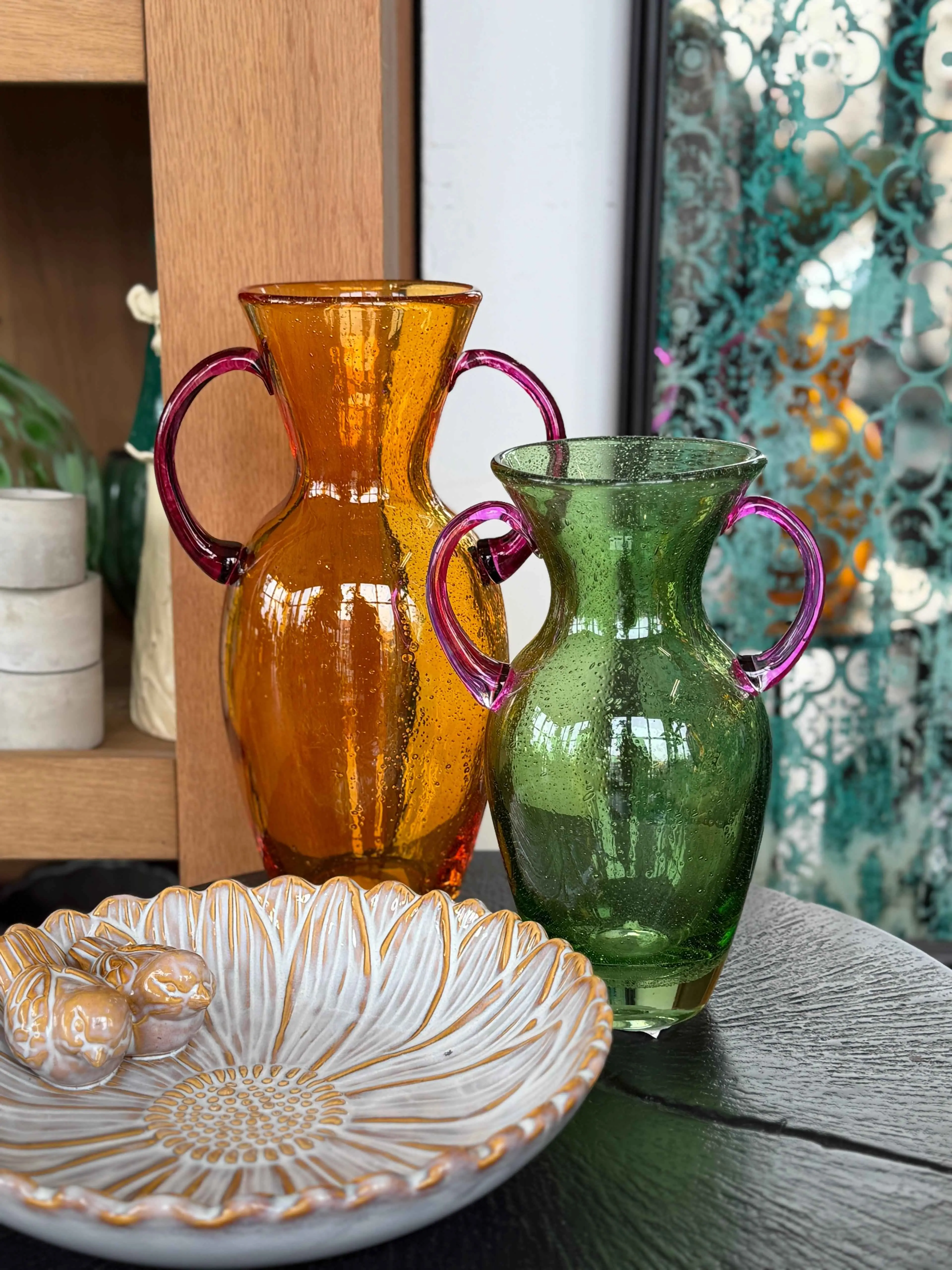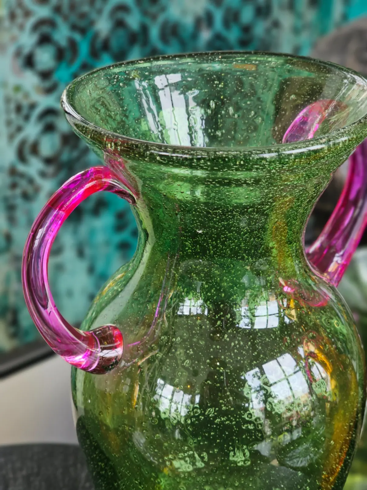 Wazon szklany zielony z uchwytami
