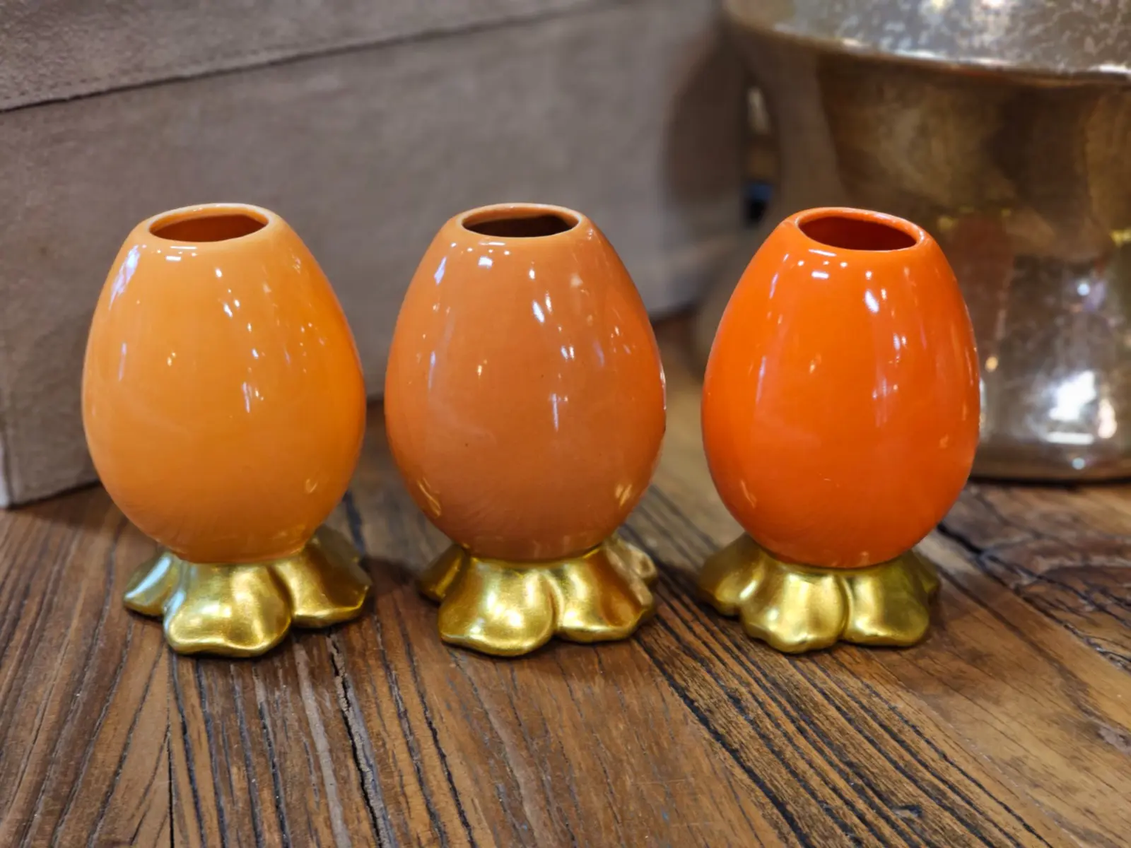 Wazon w kształcie jajka z kwiatkiem - ciemnopomarańczowy 8,5cm