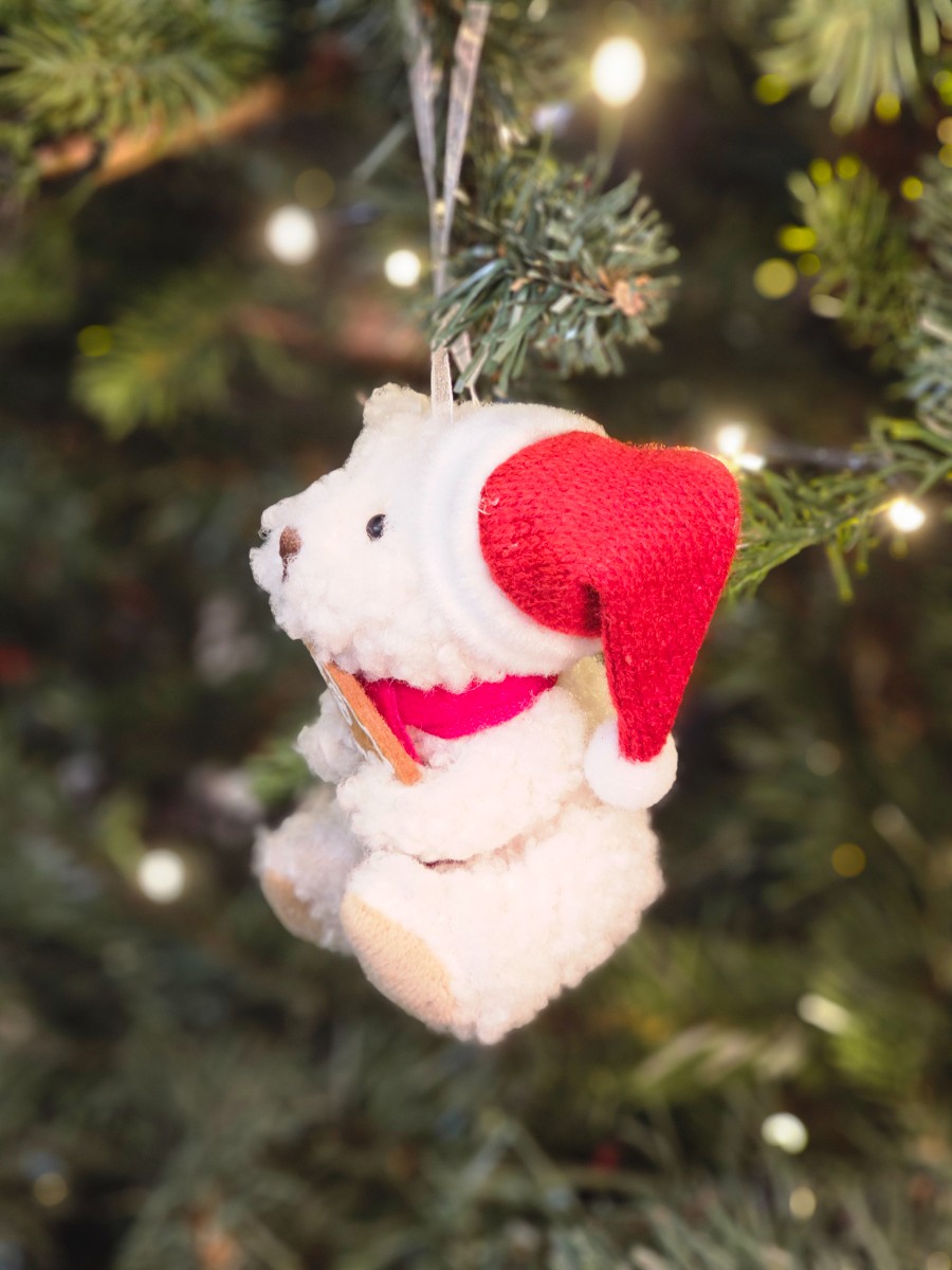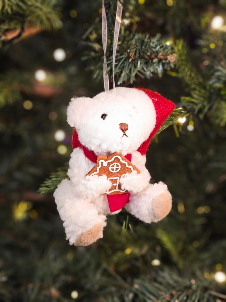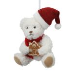 Zawieszka miś w świątecznej czapce - z pierniczkowym domkiem 12cm