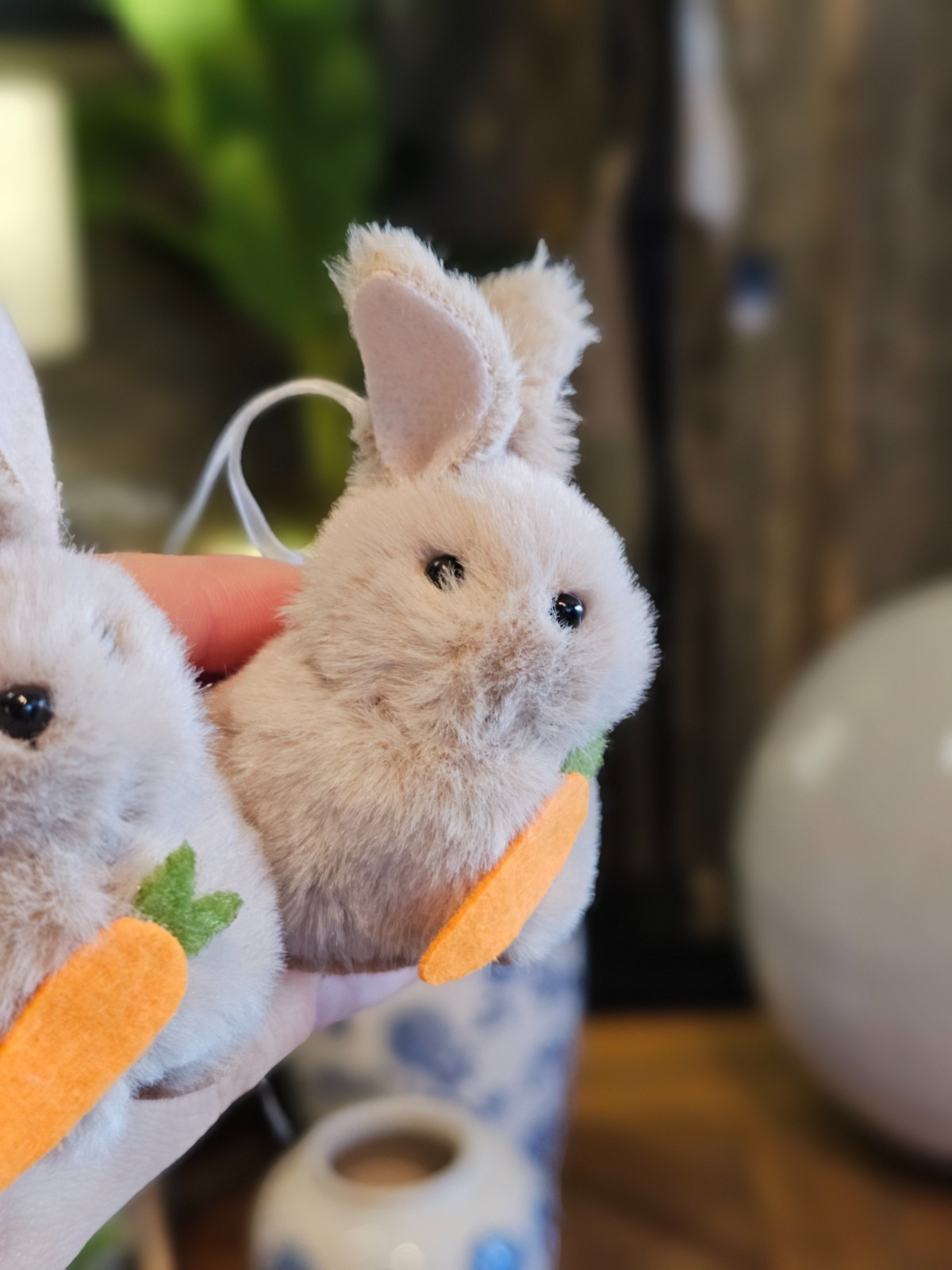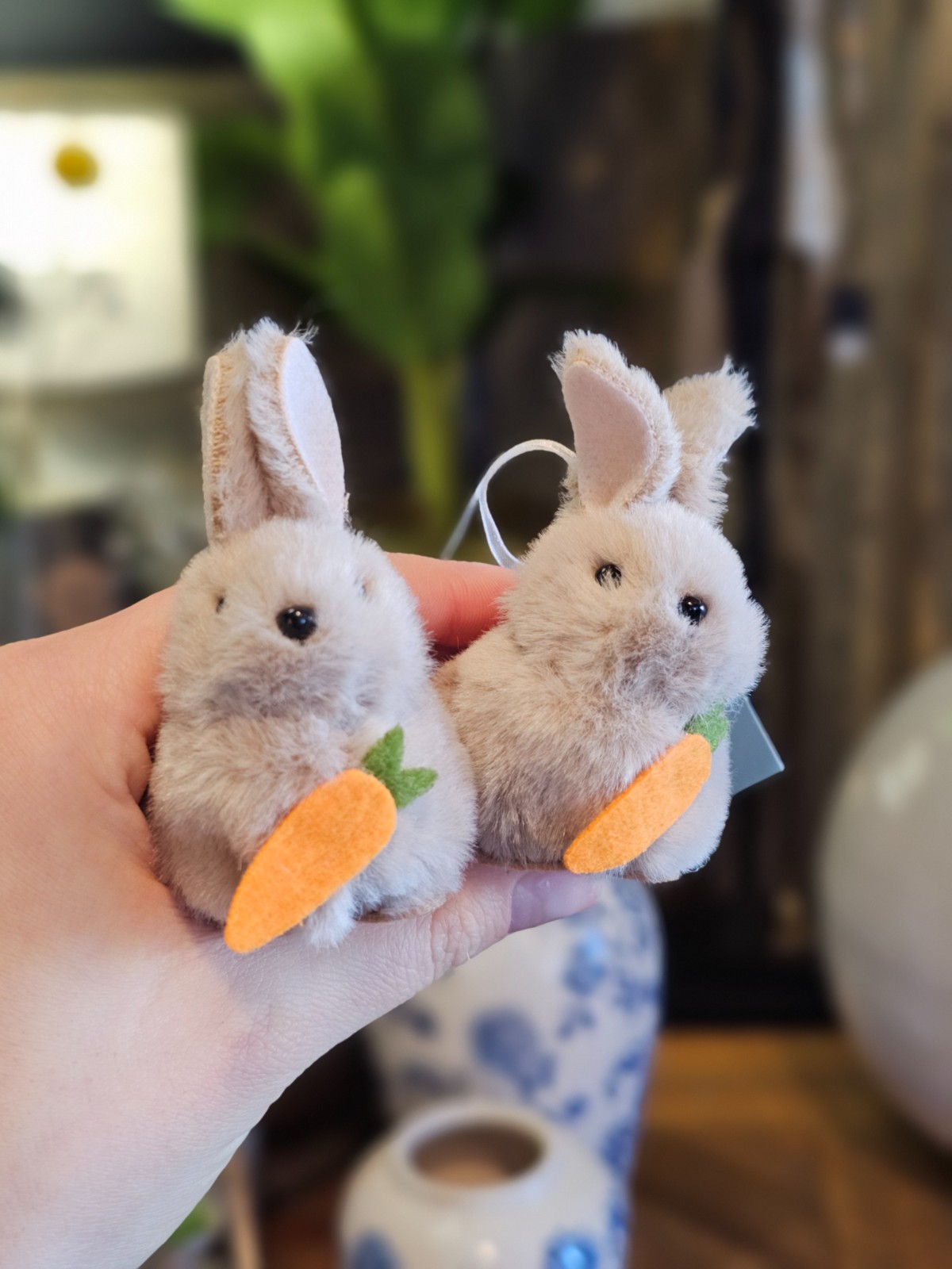 Zestaw 2szt. królik beżowy z marchewką, zawieszka 7cm